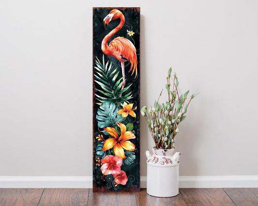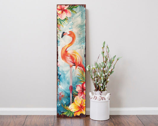 Vibrant Summer Flamingo Porch Sign | 36in Watercolor Tropical Door Decor