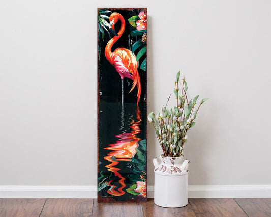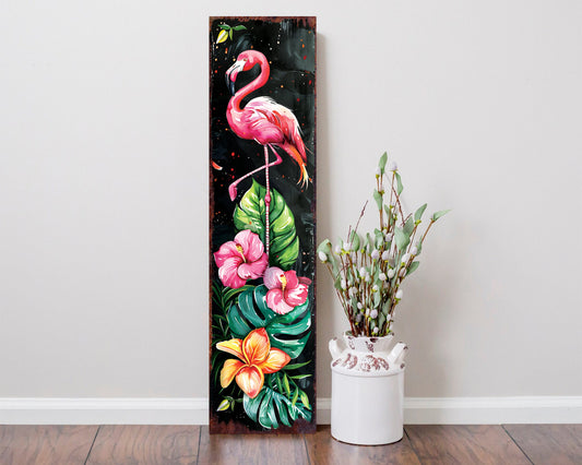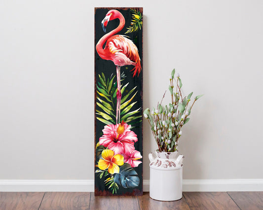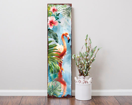 Summer Tropical Watercolor Flamingo Porch Sign - 36in Outdoor Entryway Art