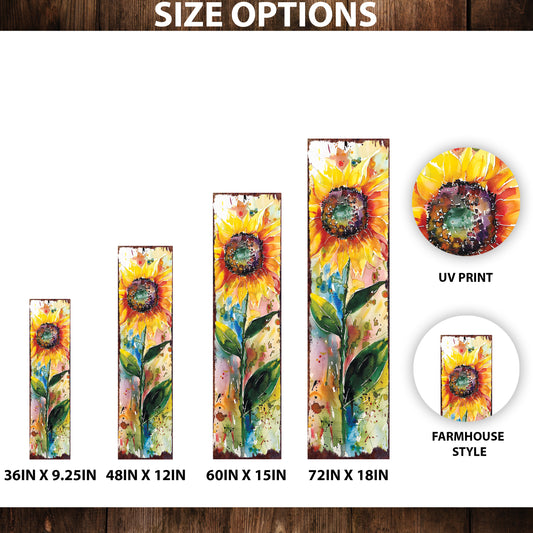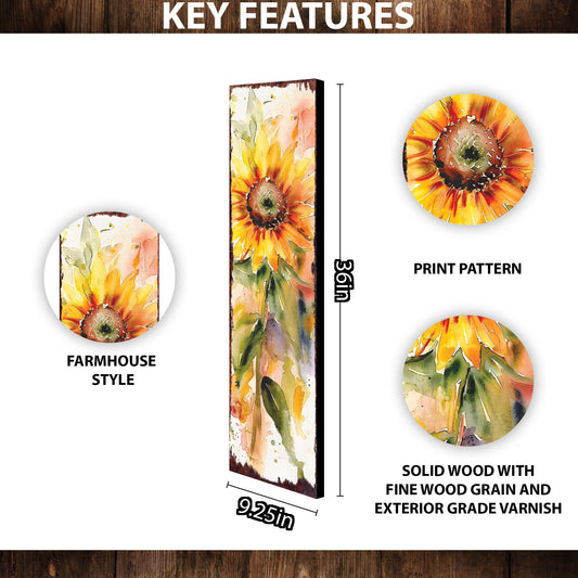 36" Summer Watercolor Sunflower Porch Sign | Rustic Farmhouse Welcome