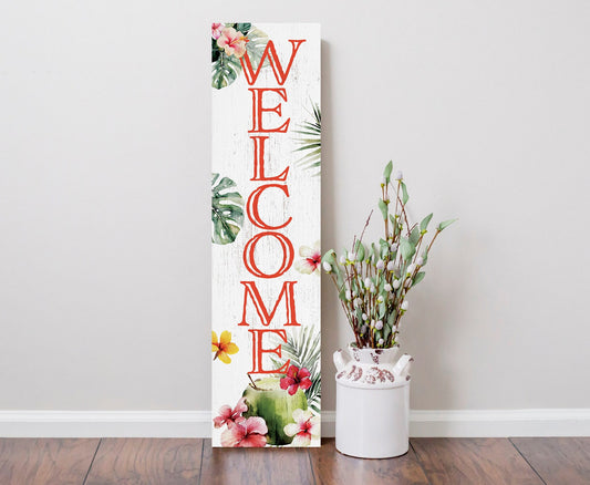 Summer Tropical Welcome Porch Sign | 36" Island Vibes Entryway Decor