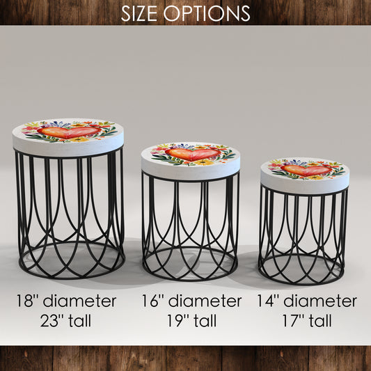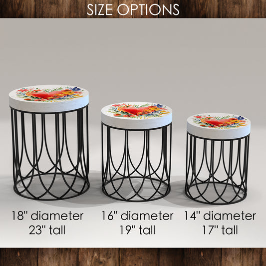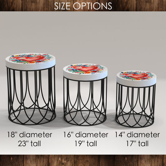 Charming Valentine's Round Accent Table | UV Print Botanical Wood & Metal