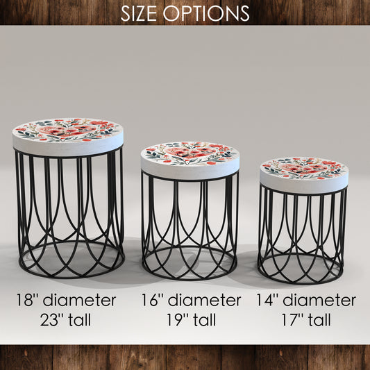 Valentine's Day Botanical Accent Table | Romantic Round Side Table | Wood & Metal Decor