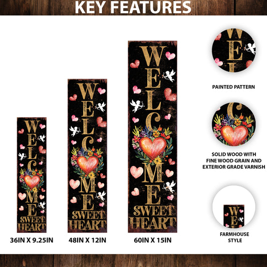 Valentine's Day Welcome Sweetheart Porch Sign | Rustic Wooden Entryway Decor