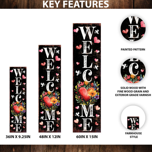 Welcome Valentine's Day Porch Sign | Rustic Entryway Decor | 3 Sizes