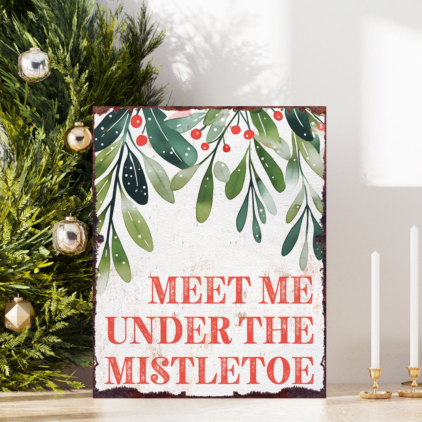 Christmas Mistletoe Wood Sign | Rustic Holiday Tabletop Decor Gift