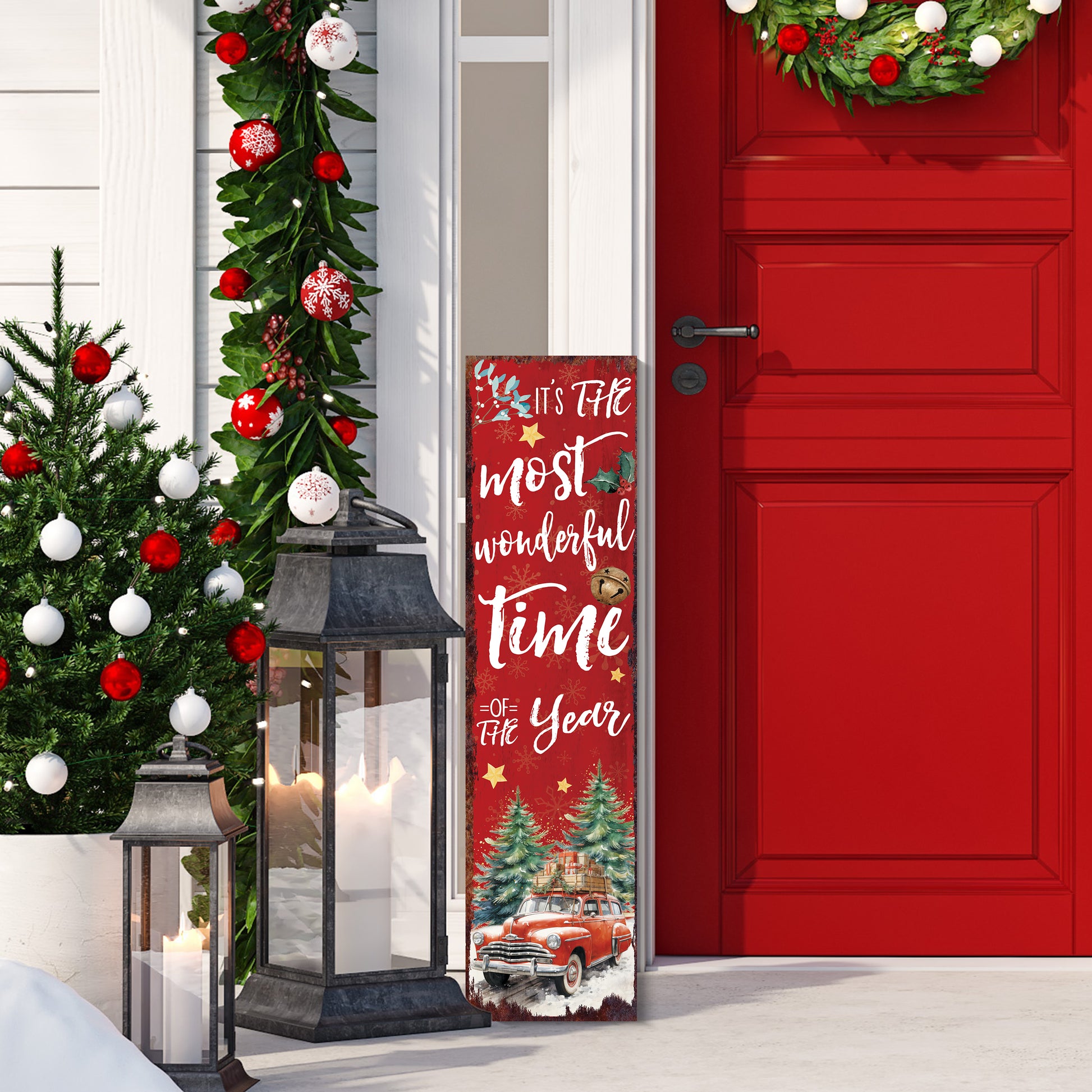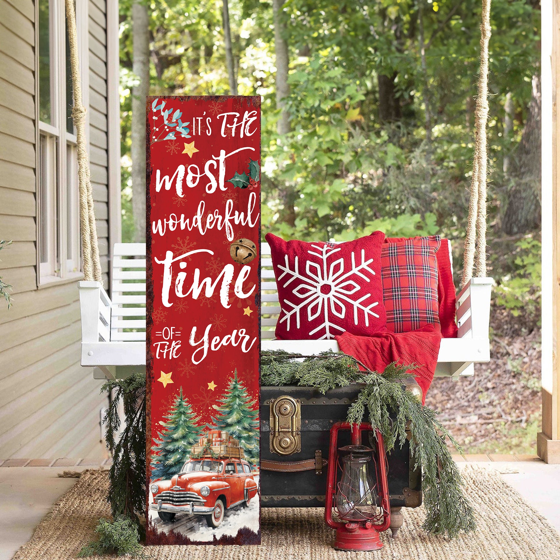 Vintage Red Truck Christmas Porch Sign | Festive Farmhouse Welcome Decor