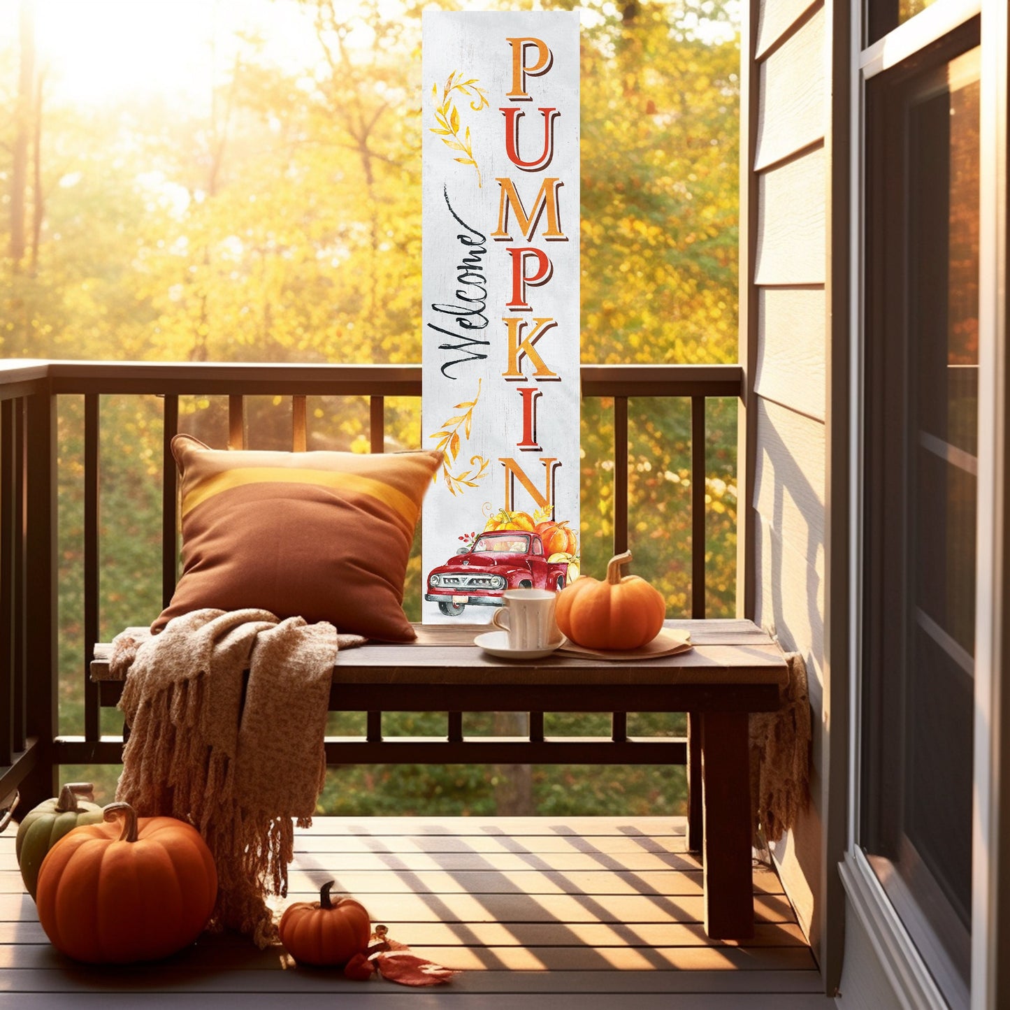 - Rustic Farmhouse Style: Vertical "WELCOME" with pumpkins & leaves adds cozy, inviting character.