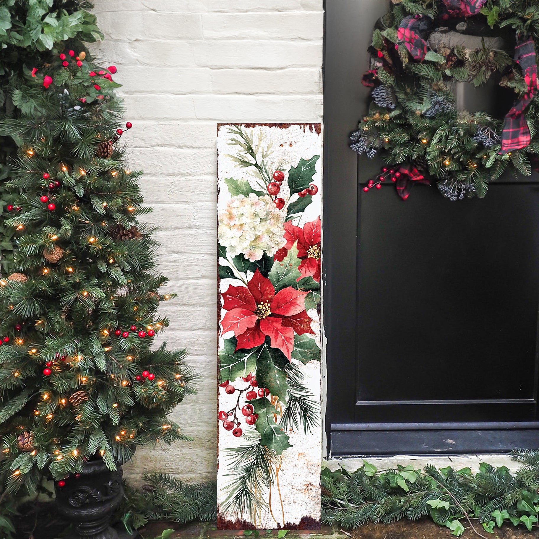 Christmas Poinsettia Porch Sign - Festive Holiday Outdoor Welcome Decor