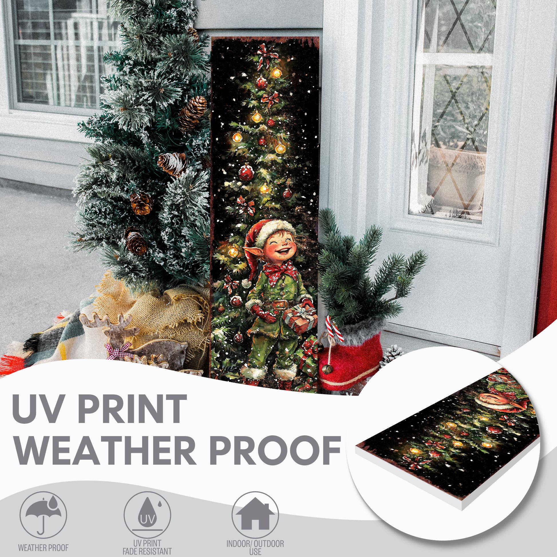 Merry Christmas Elf Porch Sign | Outdoor Holiday Welcome Decor