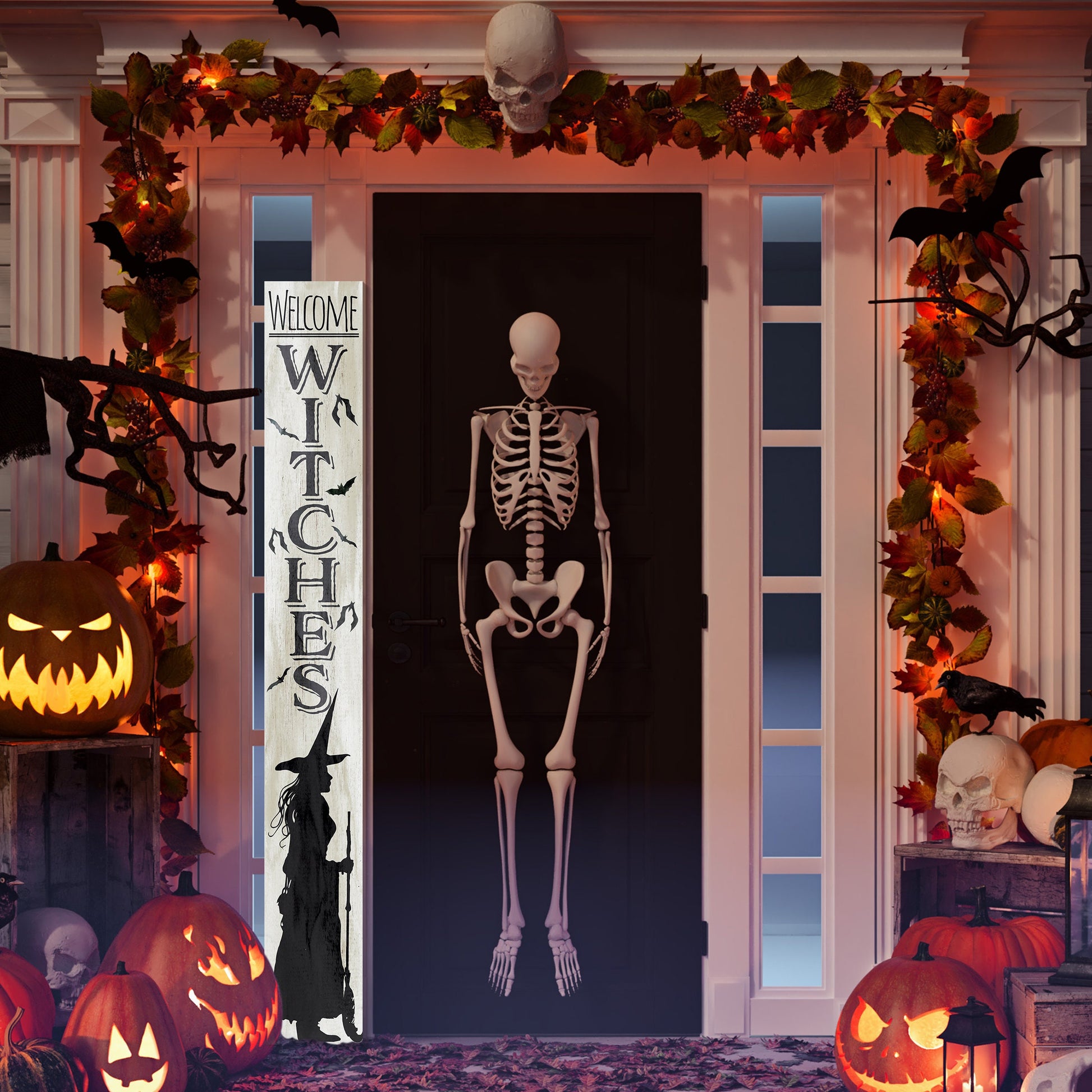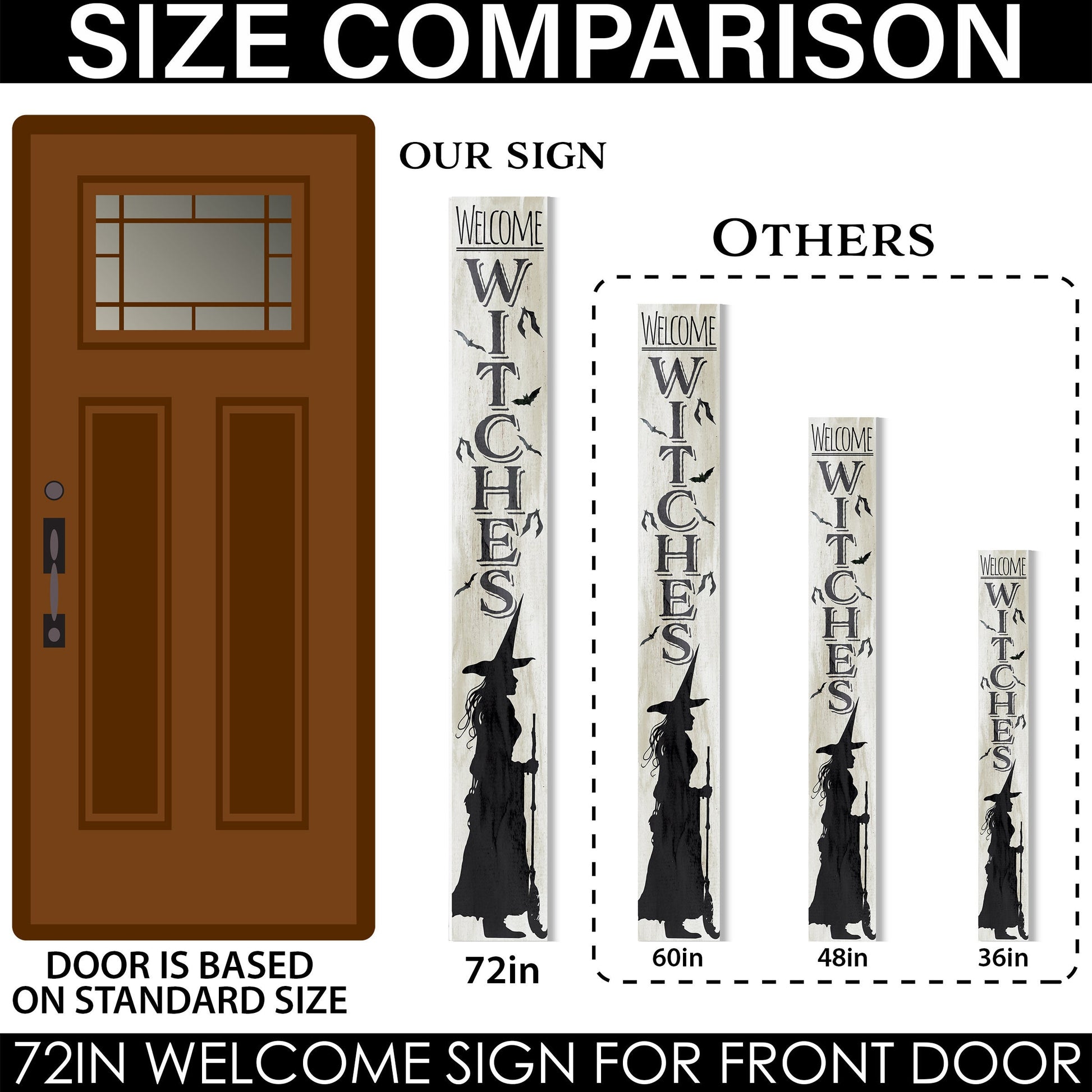 72-Inch "Welcome Witches" Wooden Halloween Sign - Spellbinding Front Door Decor for Porch, Entryway, and Spooky Season Festivities