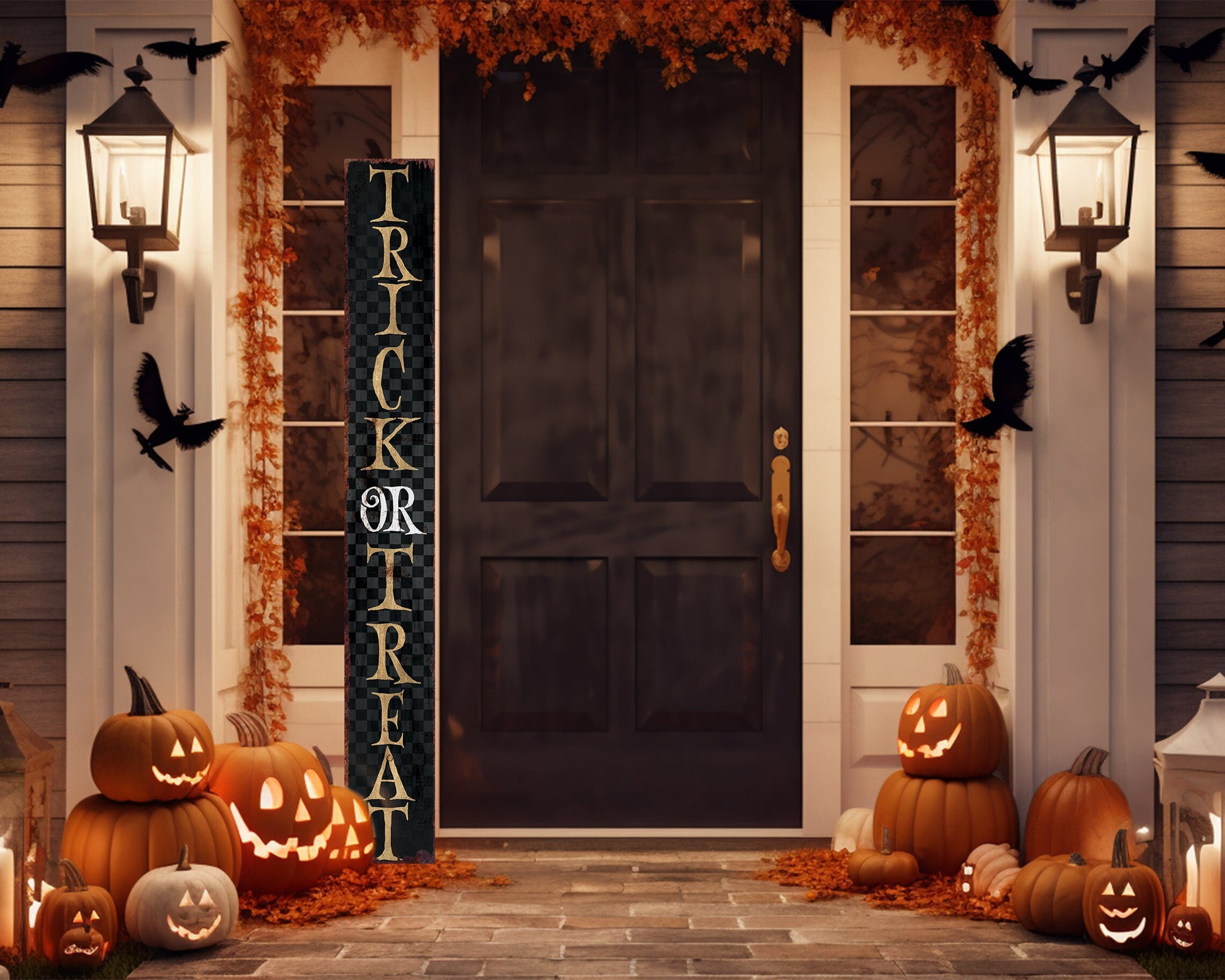 Celebrate the spooky season with our 72in "Trick or Treat" Halloween Welcome Porch Sign. This standing sign features a vintage Halloween design, perfectly capturing the rustic charm and spirit of a modern farmhouse during the Halloween season. It makes a delightful addition to your front porch decor.