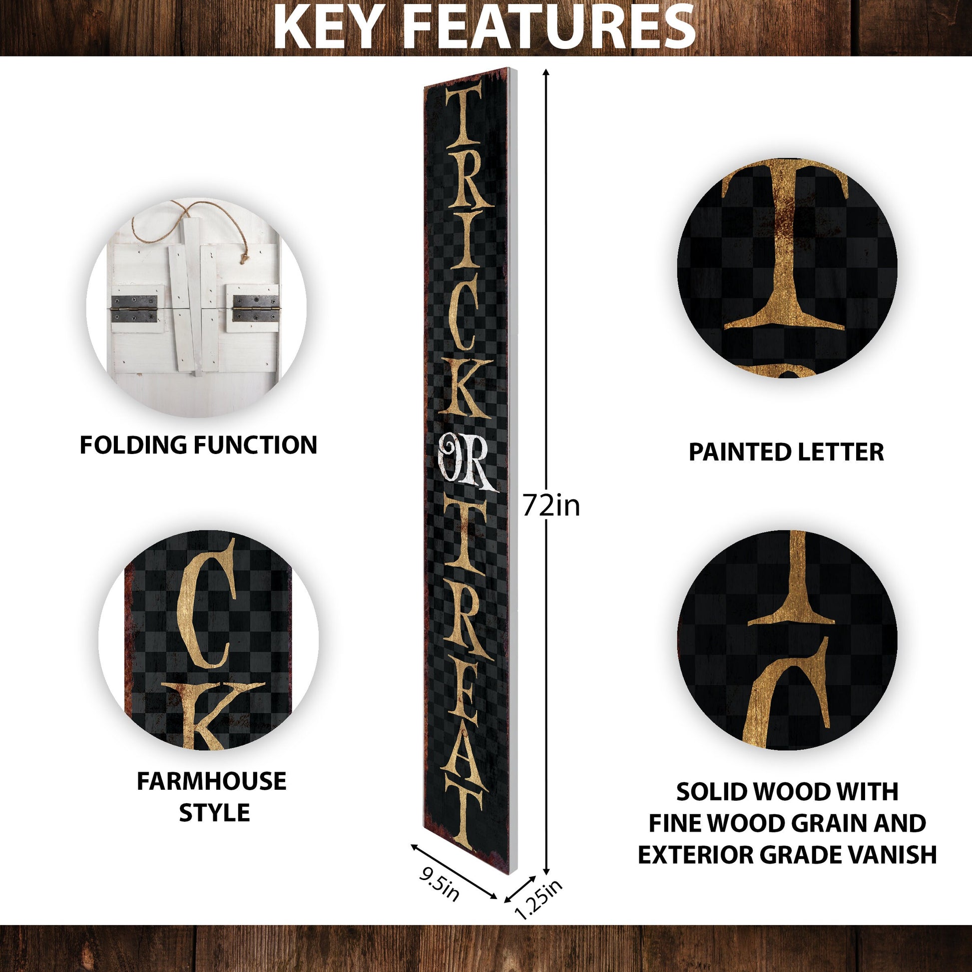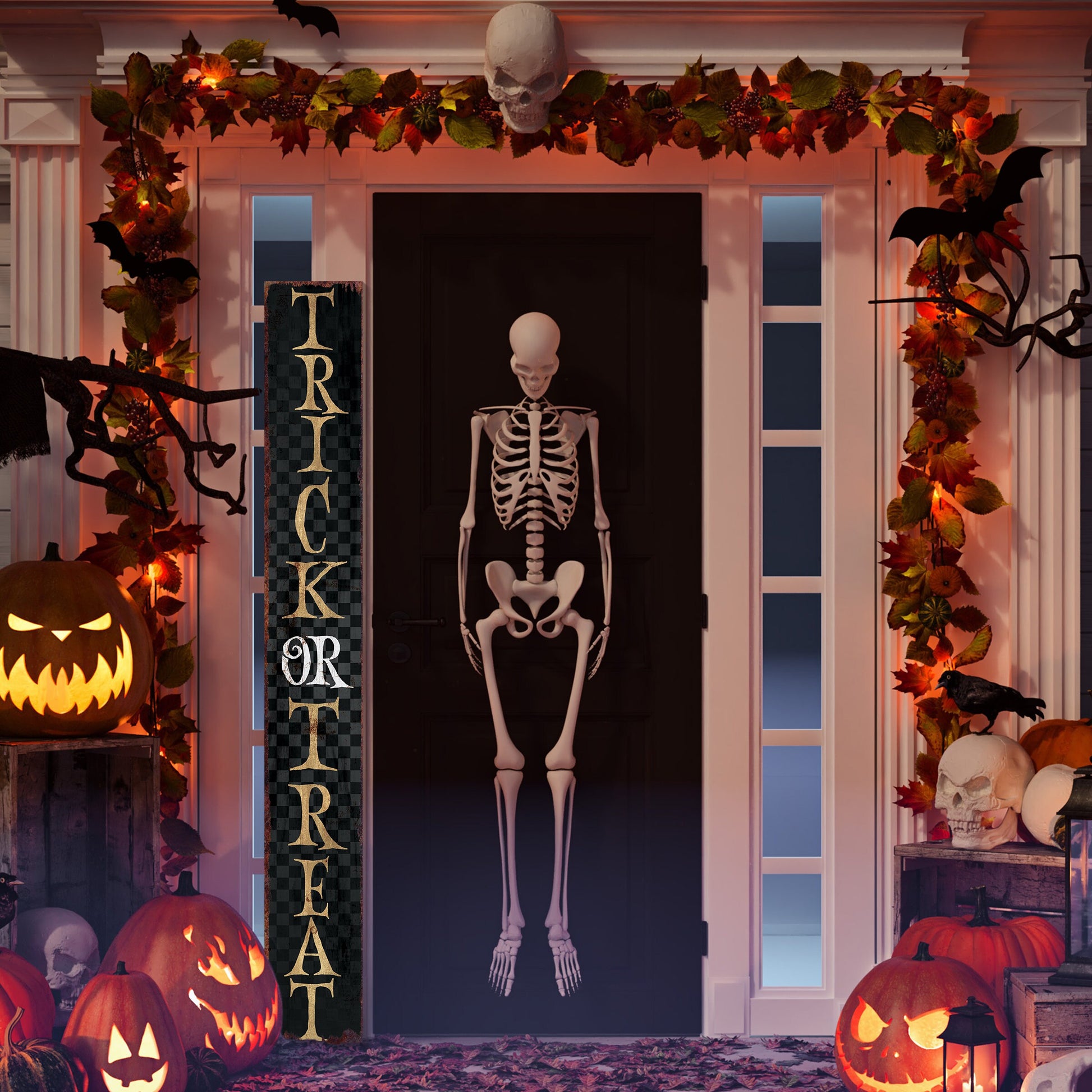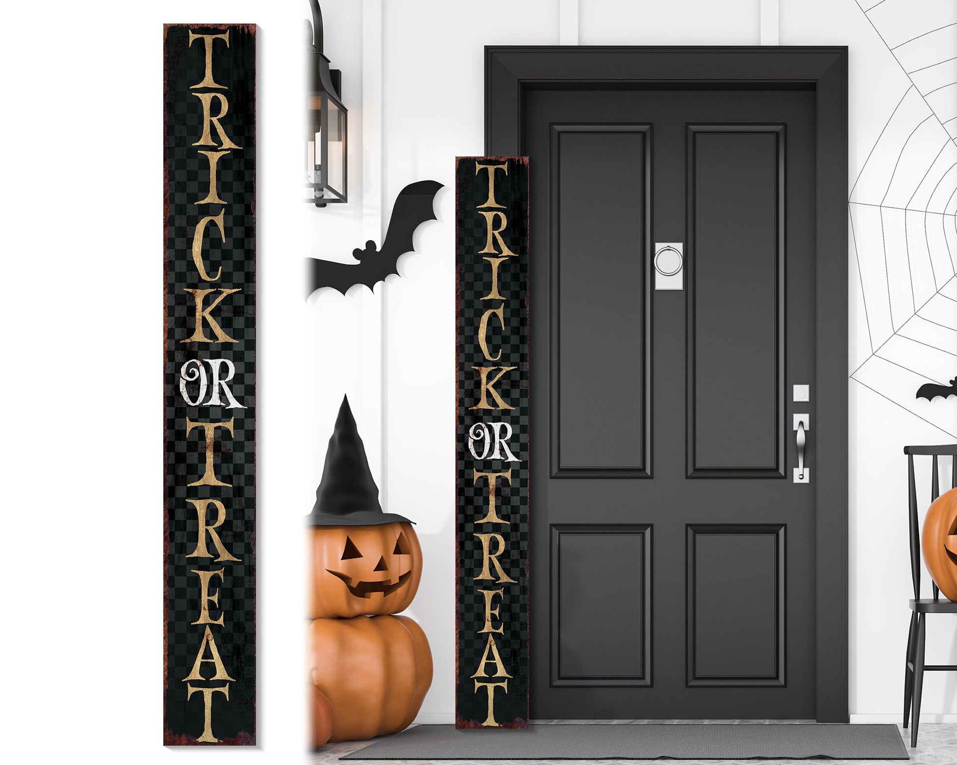 72in Trick or Treat Halloween Welcome Porch Sign Standing Front Door Decor Halloween Decoration Rustic Modern Farmhouse Entryway Board