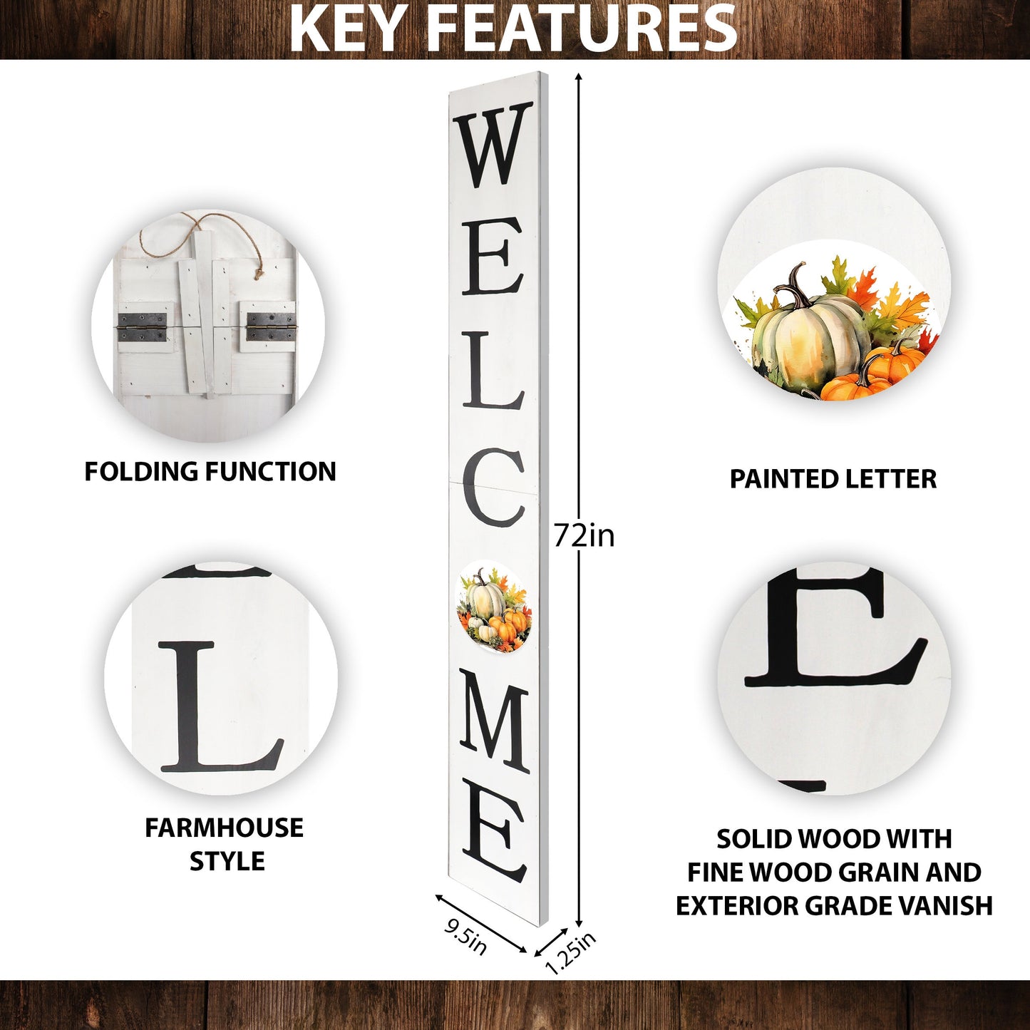 72" Farmhouse Fall Welcome Porch Sign - Rustic Autumn Outdoor Decor