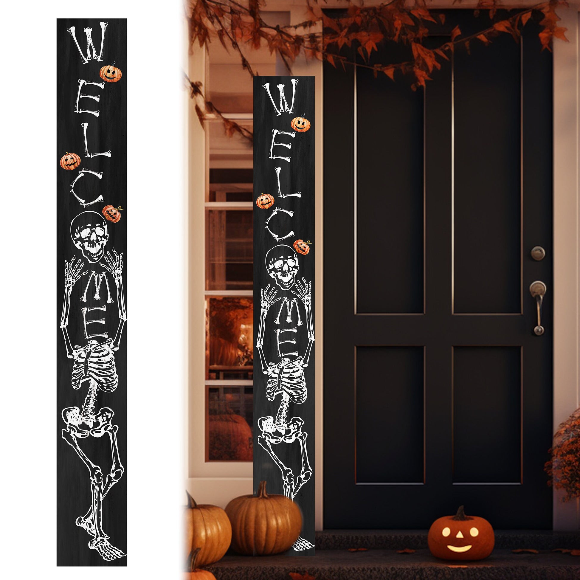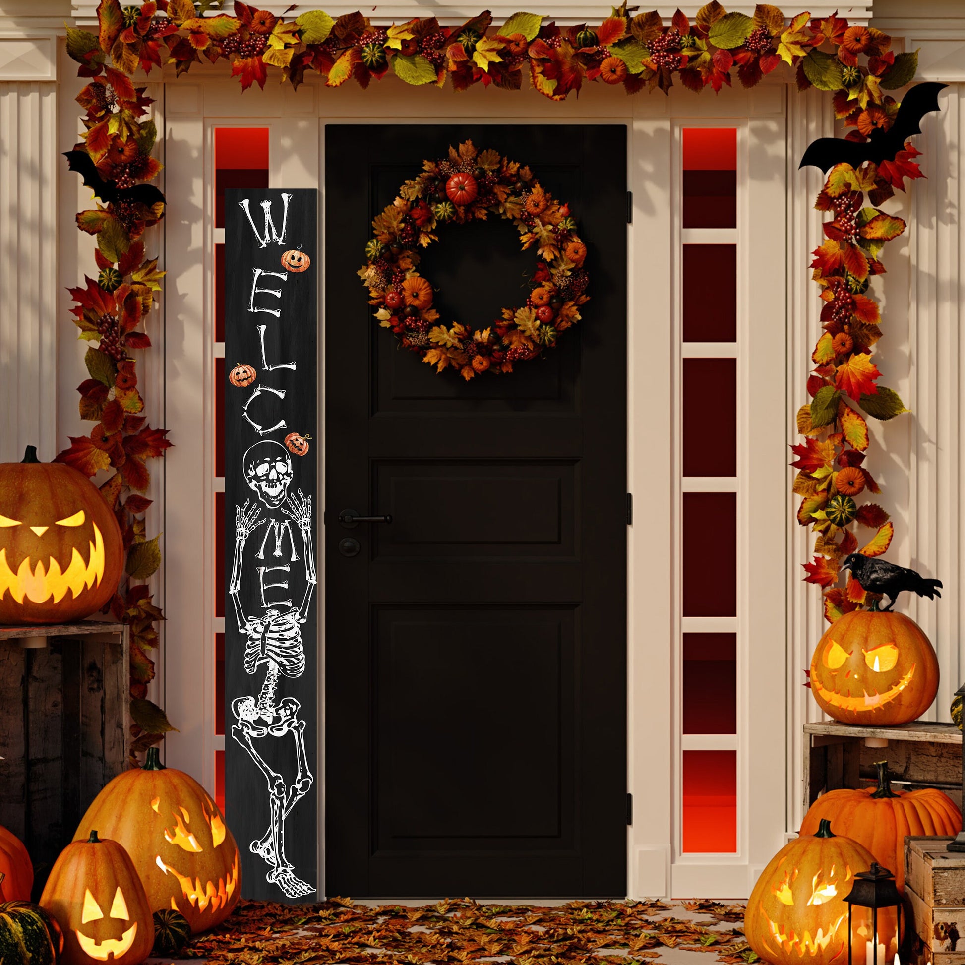 72in Wooden Halloween Skeleton Welcome Sign - Spooky Front Door Decor for Seasonal Celebrations
