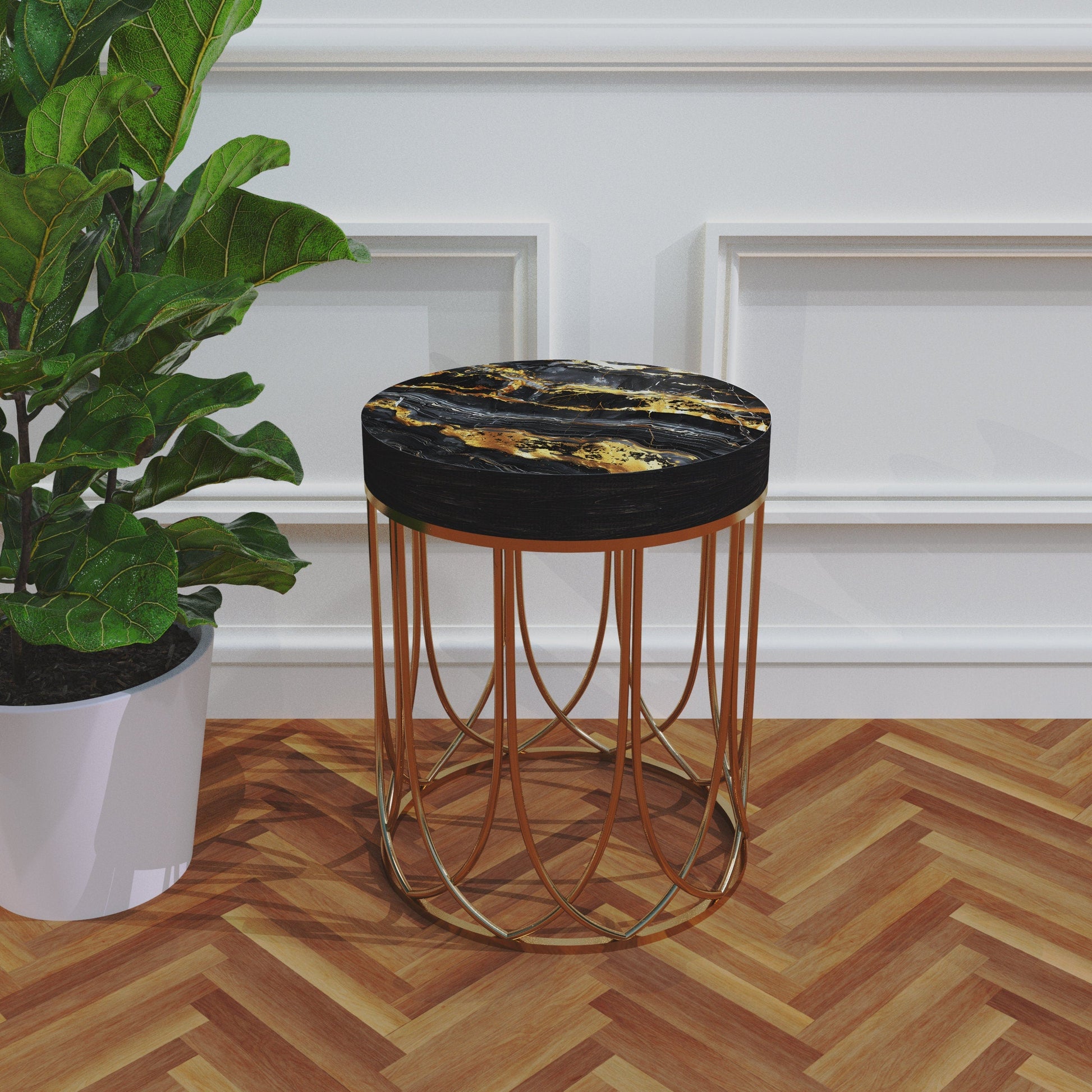 Black & Gold Marble Pattern Accent Table | 14_ Diameter, 17_ High| Round End Table, UV Print Side Table, Wood and Metal Construction