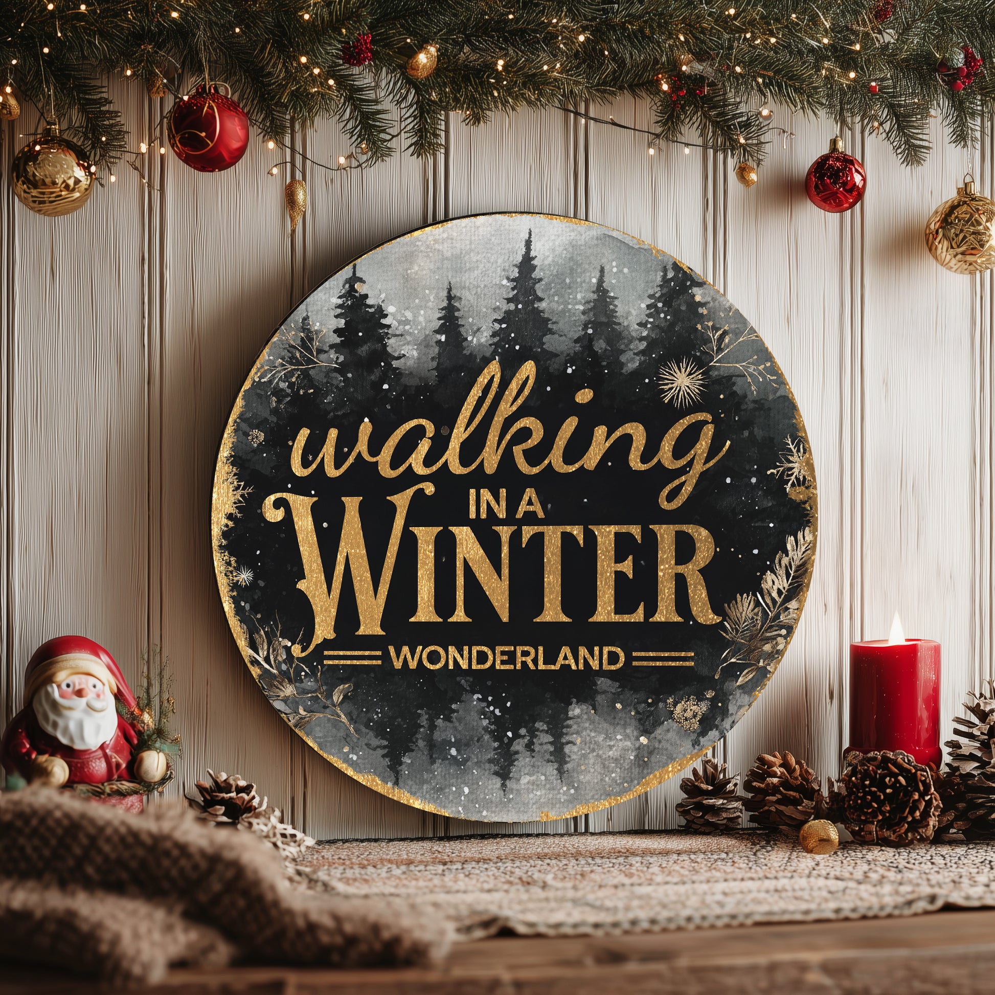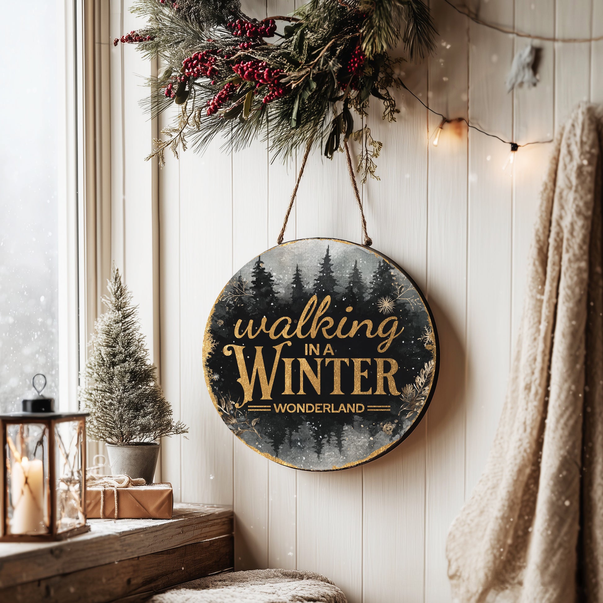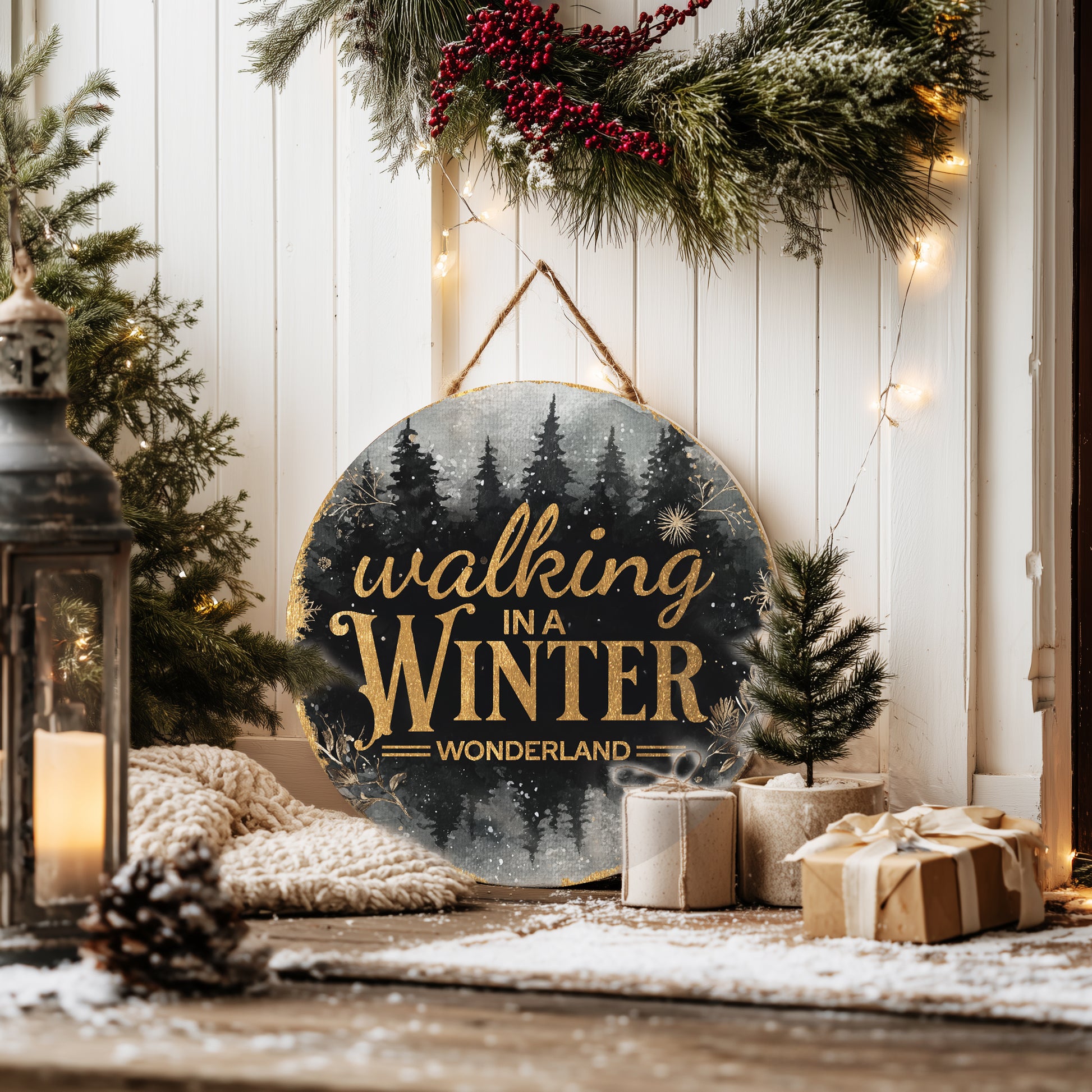 Enchanting Winter Wonderland Round Door Sign | Festive Holiday Porch Decor