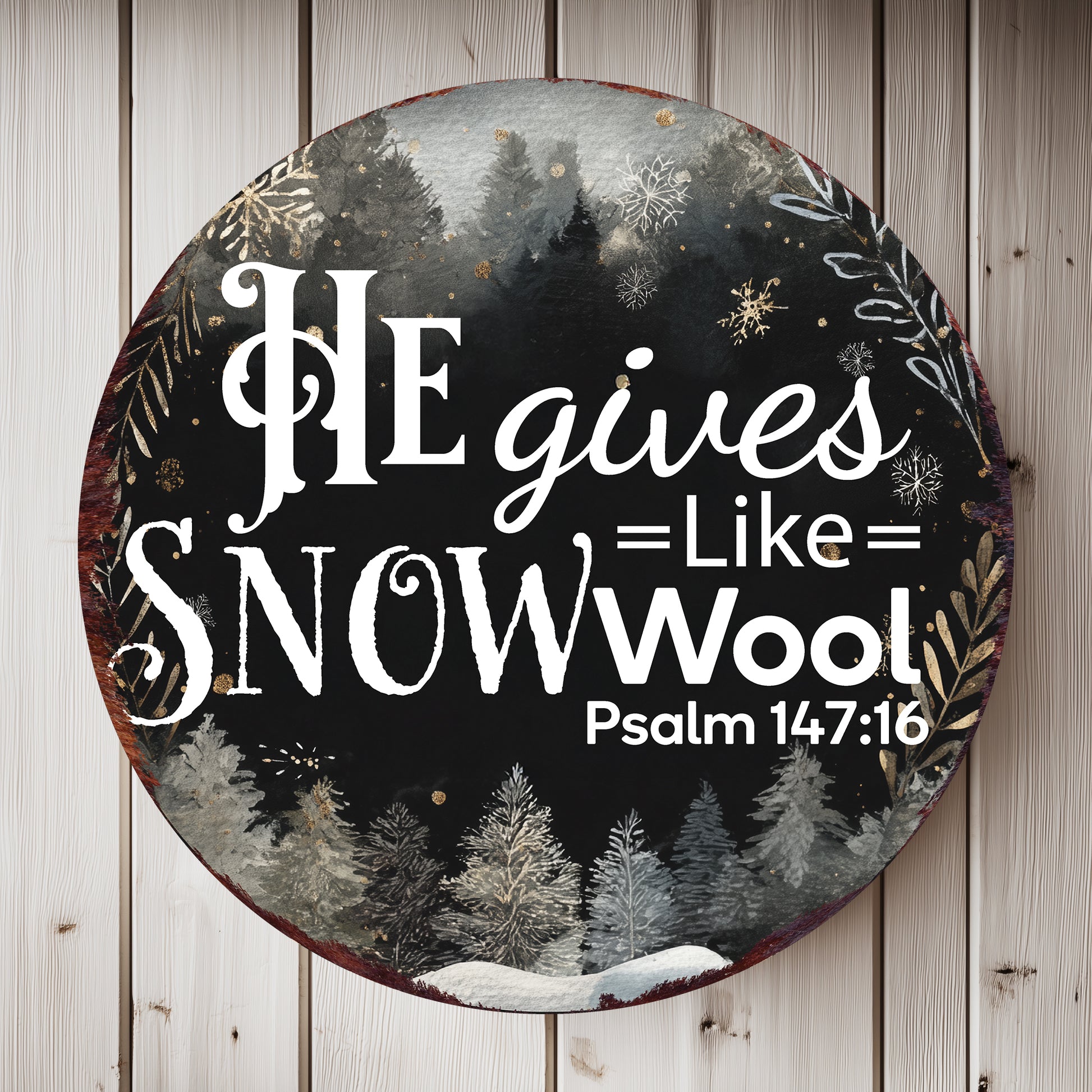 Infuse your home with peaceful warmth this winter with our unique round wood sign. Featuring the comforting scripture, "He Gives Snow Like Wool — Psalm 147:16," this piece creates a serene atmosphere, perfect for quiet moments and cherished memories throughout the chilly season.
