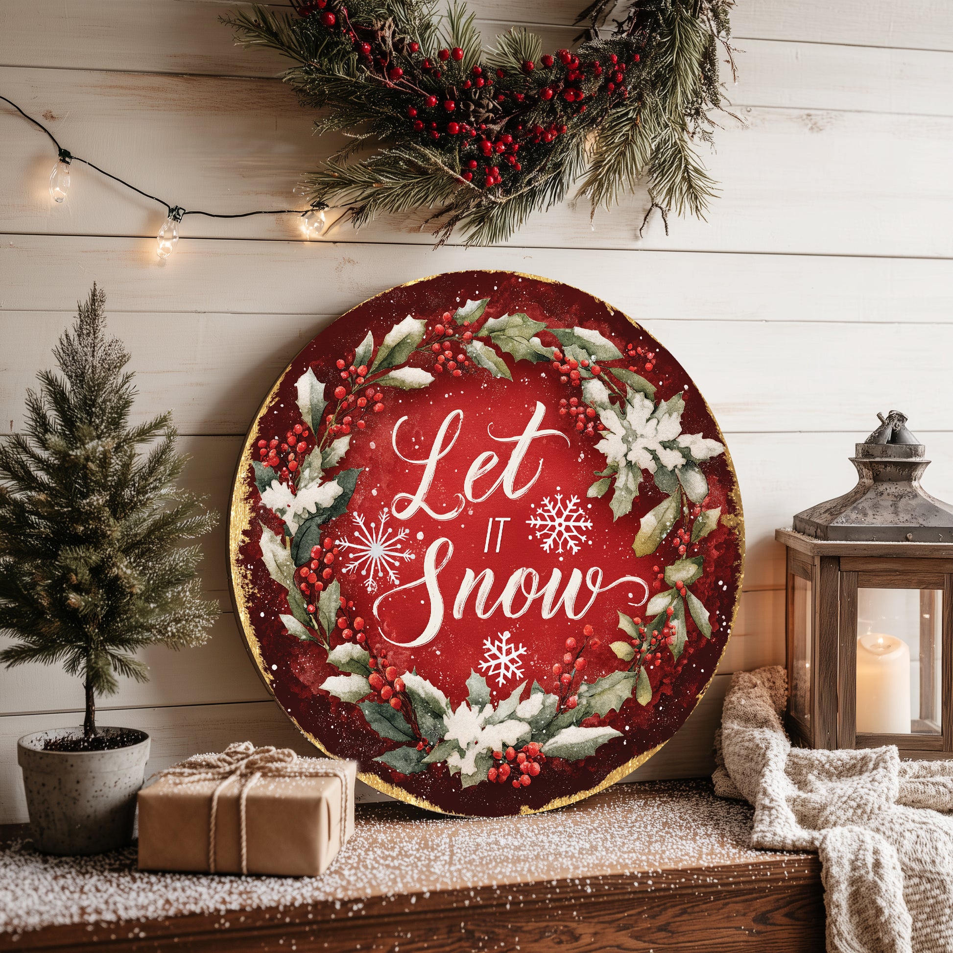 Cozy Winter 'Let It Snow' Round Sign | Modern Farmhouse Door Decor