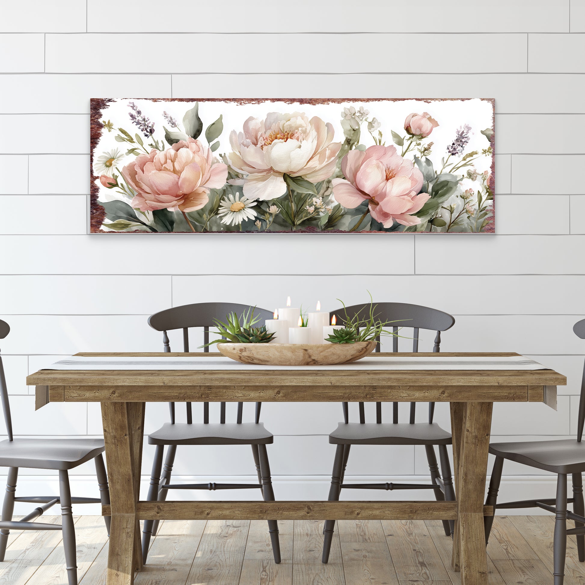 Happy Spring Peony Wall Art | Rustic Floral Home Decor