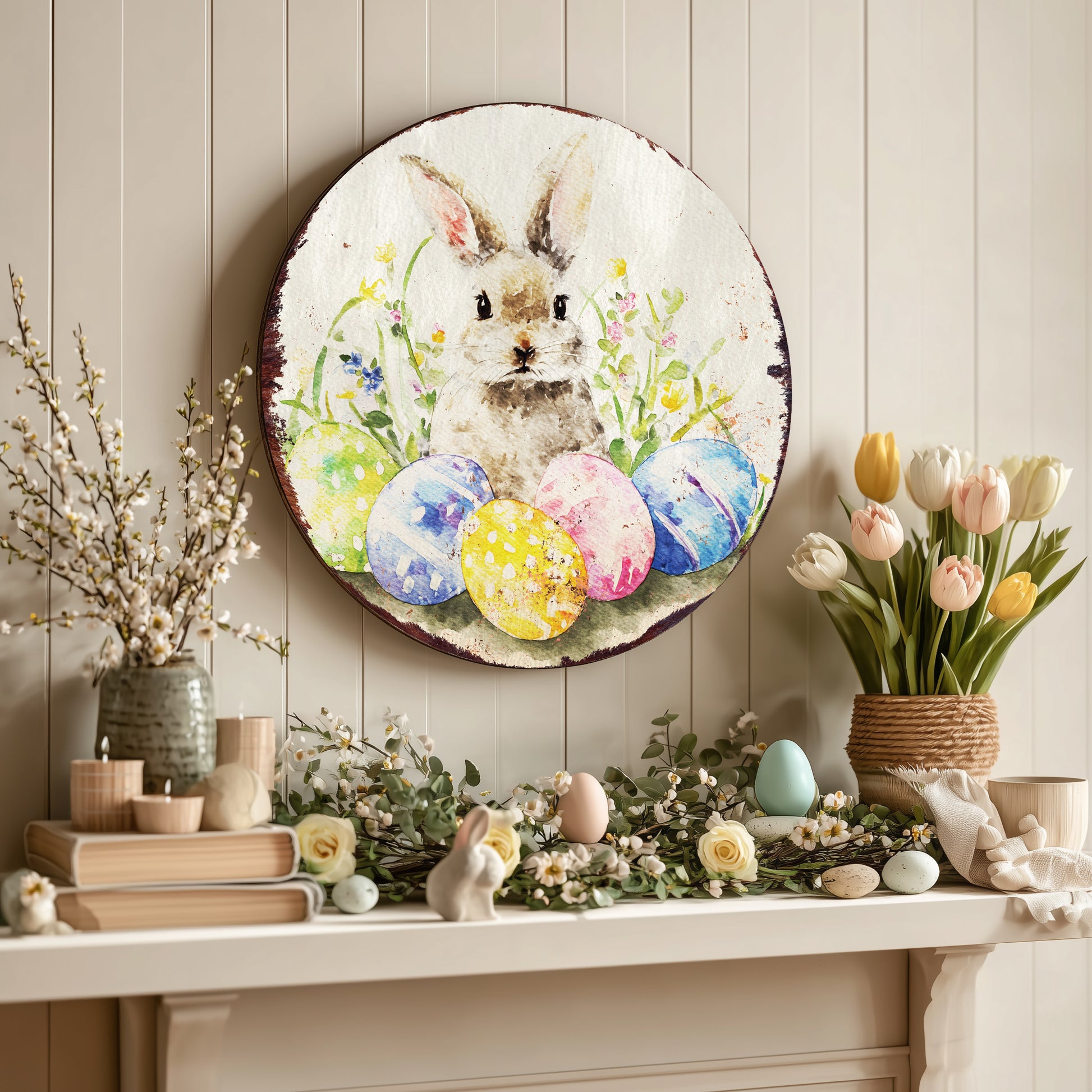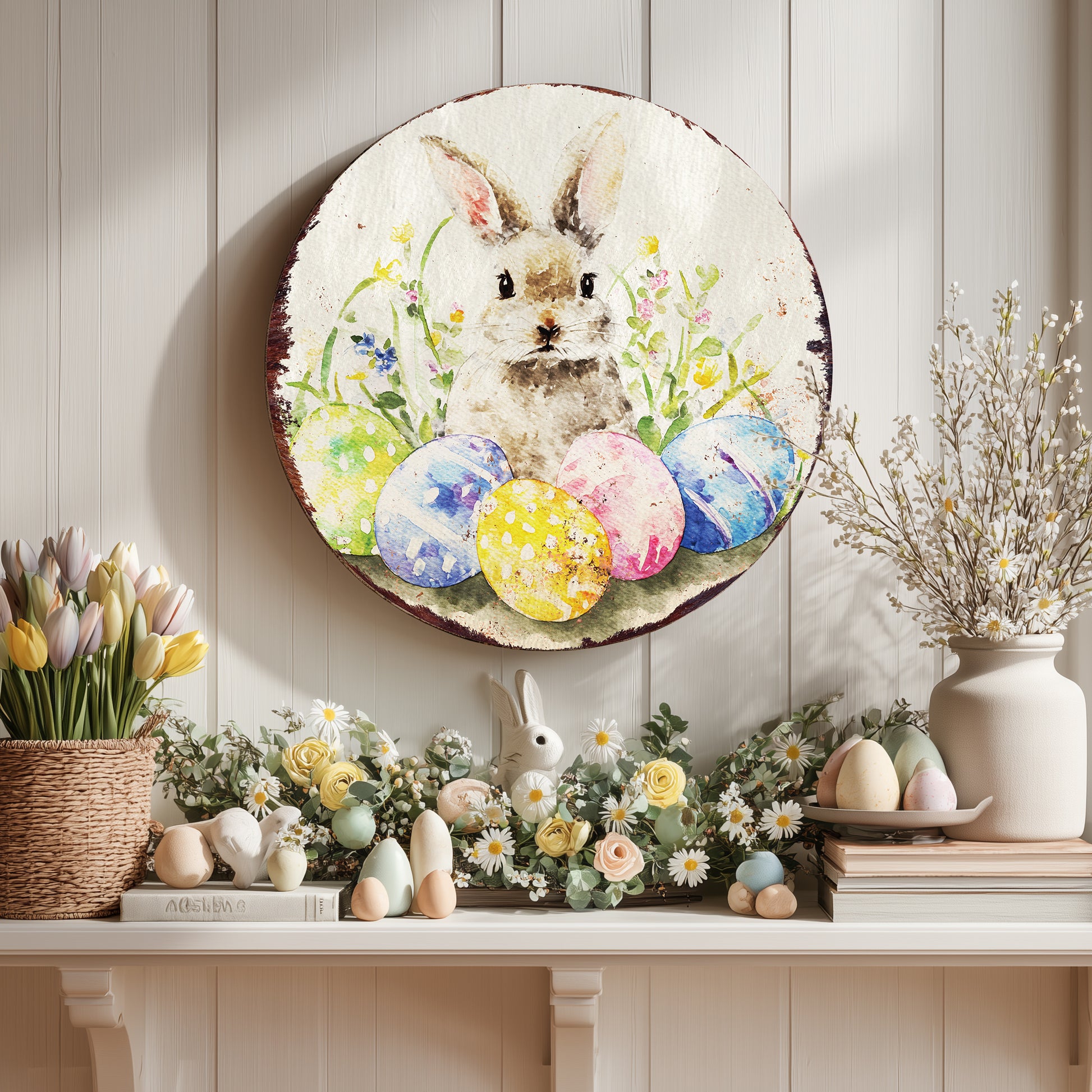 Easter Farmhouse Welcome Sign - Rustic Bunny Spring Porch Decor for Entryway & Door