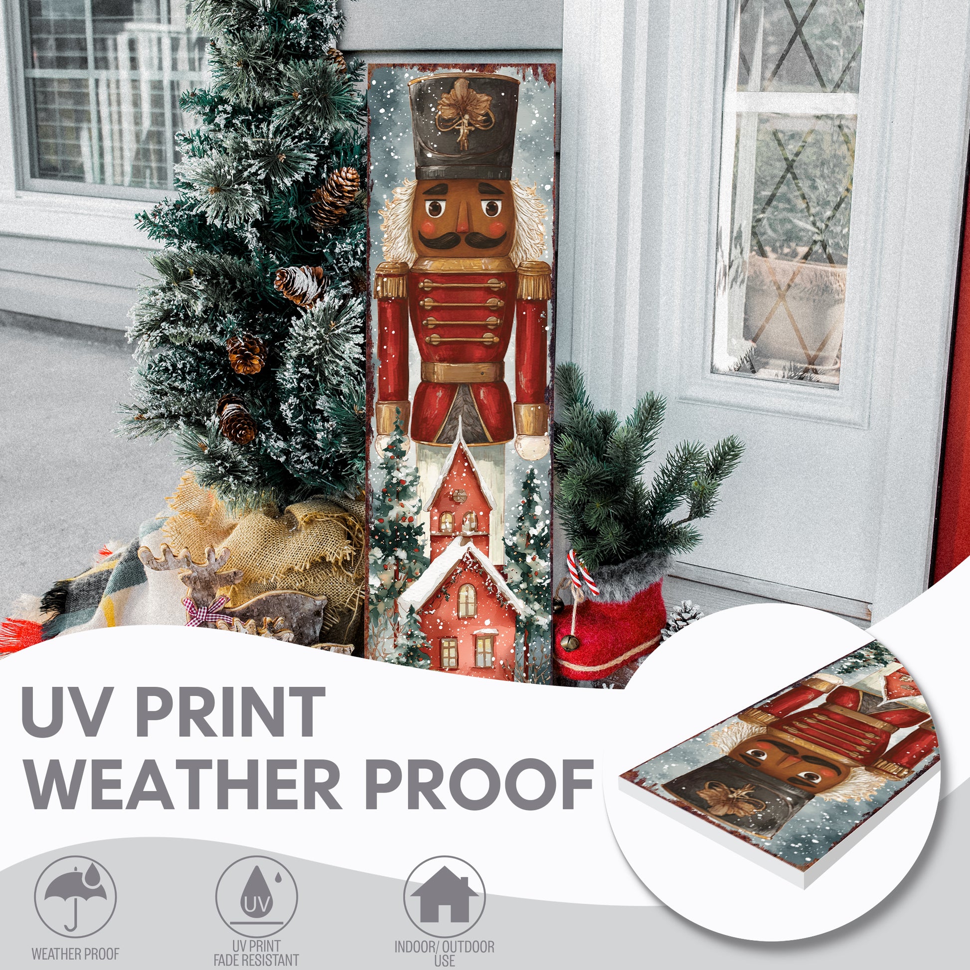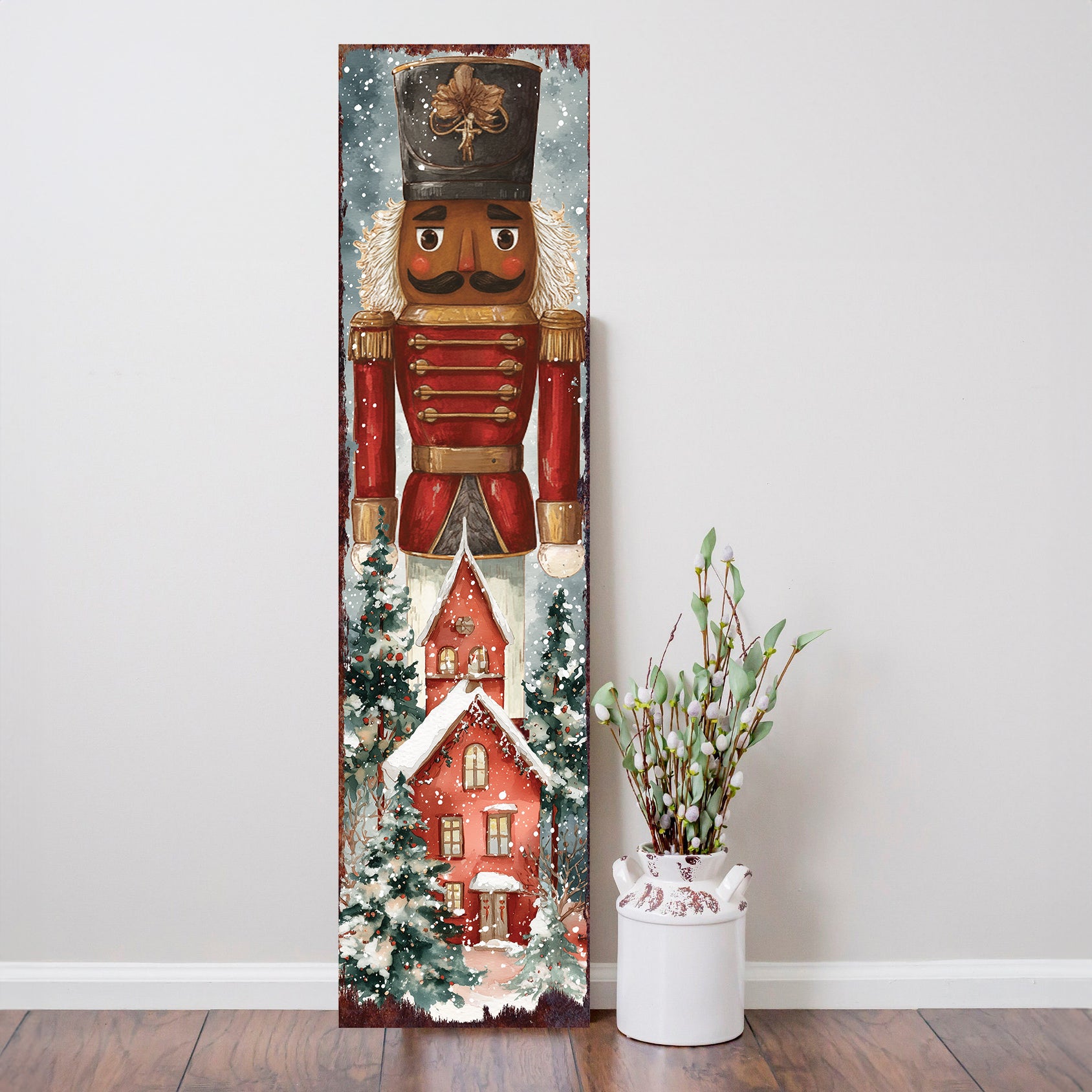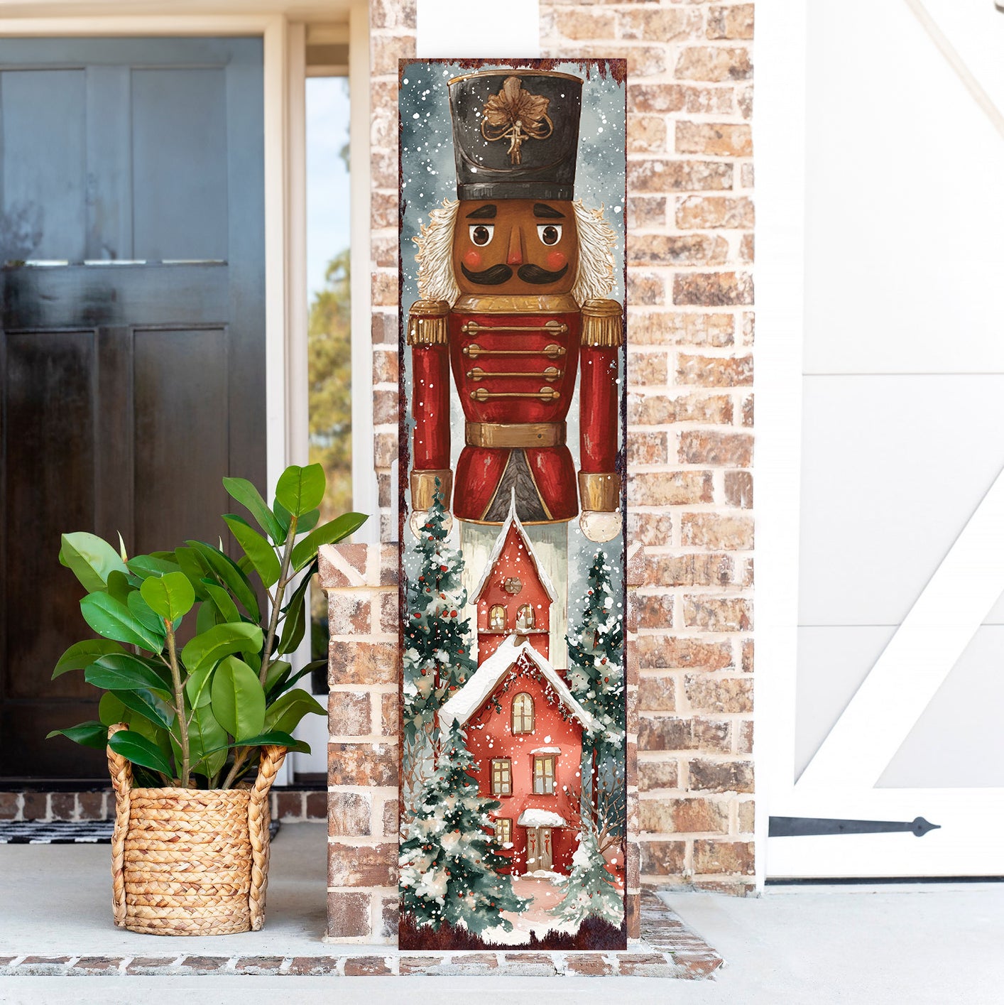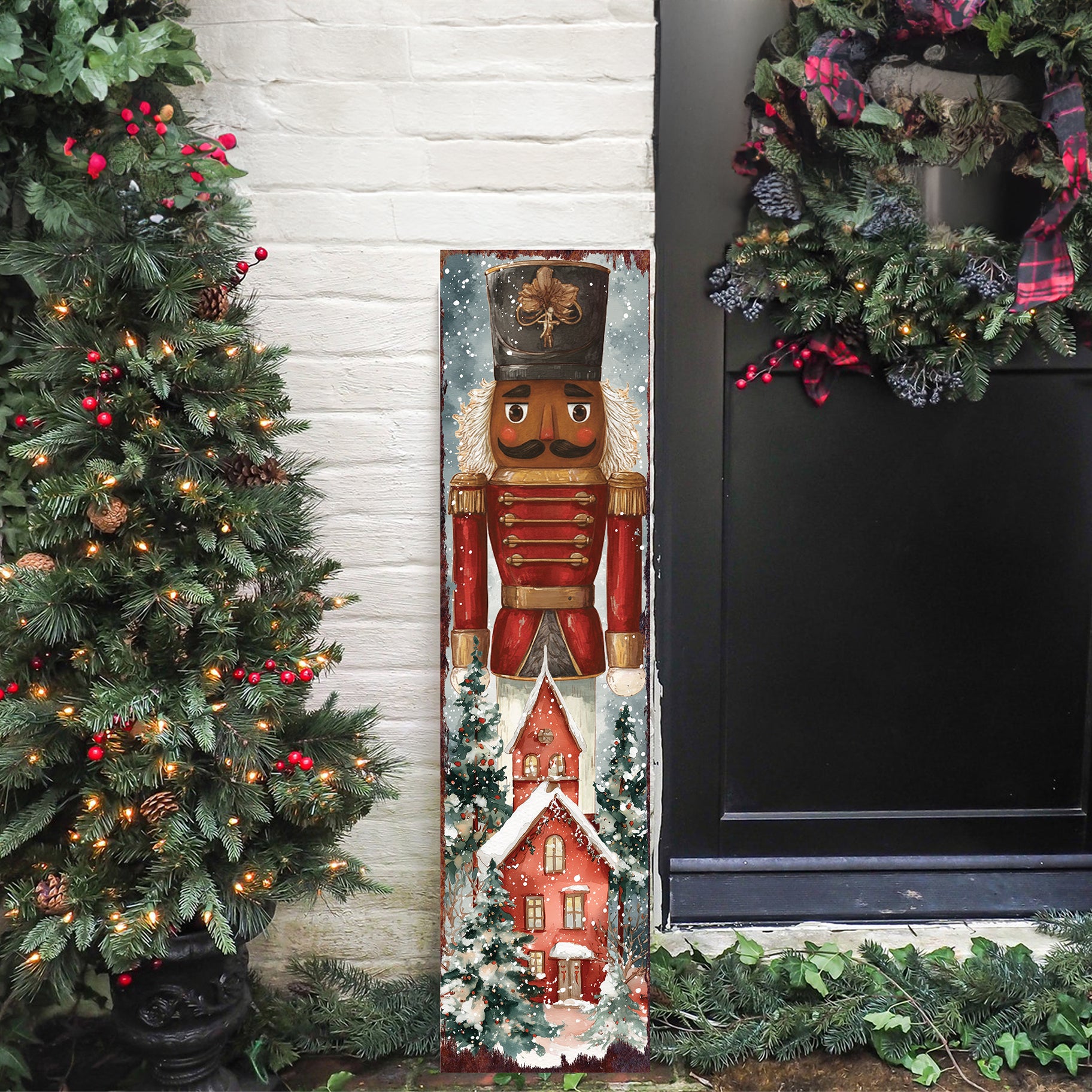 Transform your entryway into a scene of holiday wonder with this exquisite Nutcracker porch sign. Its vibrant watercolor design brings a touch of classic elegance and festive cheer, inviting warmth and joy to all who arrive. A cherished piece for your seasonal display.