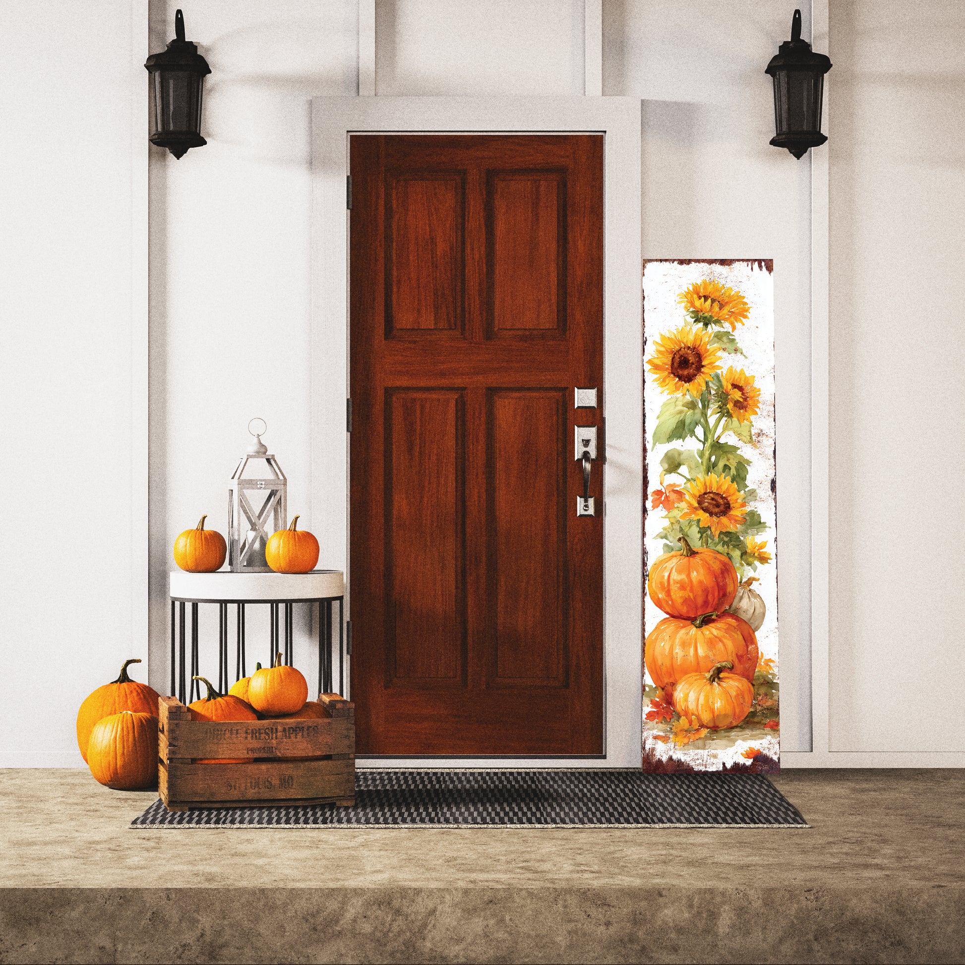 Fall Porch Sign | Pumpkin & Sunflower Vertical Wall Art | Rustic Autumn Outdoor Decor for Front Door, Garden, Entryway