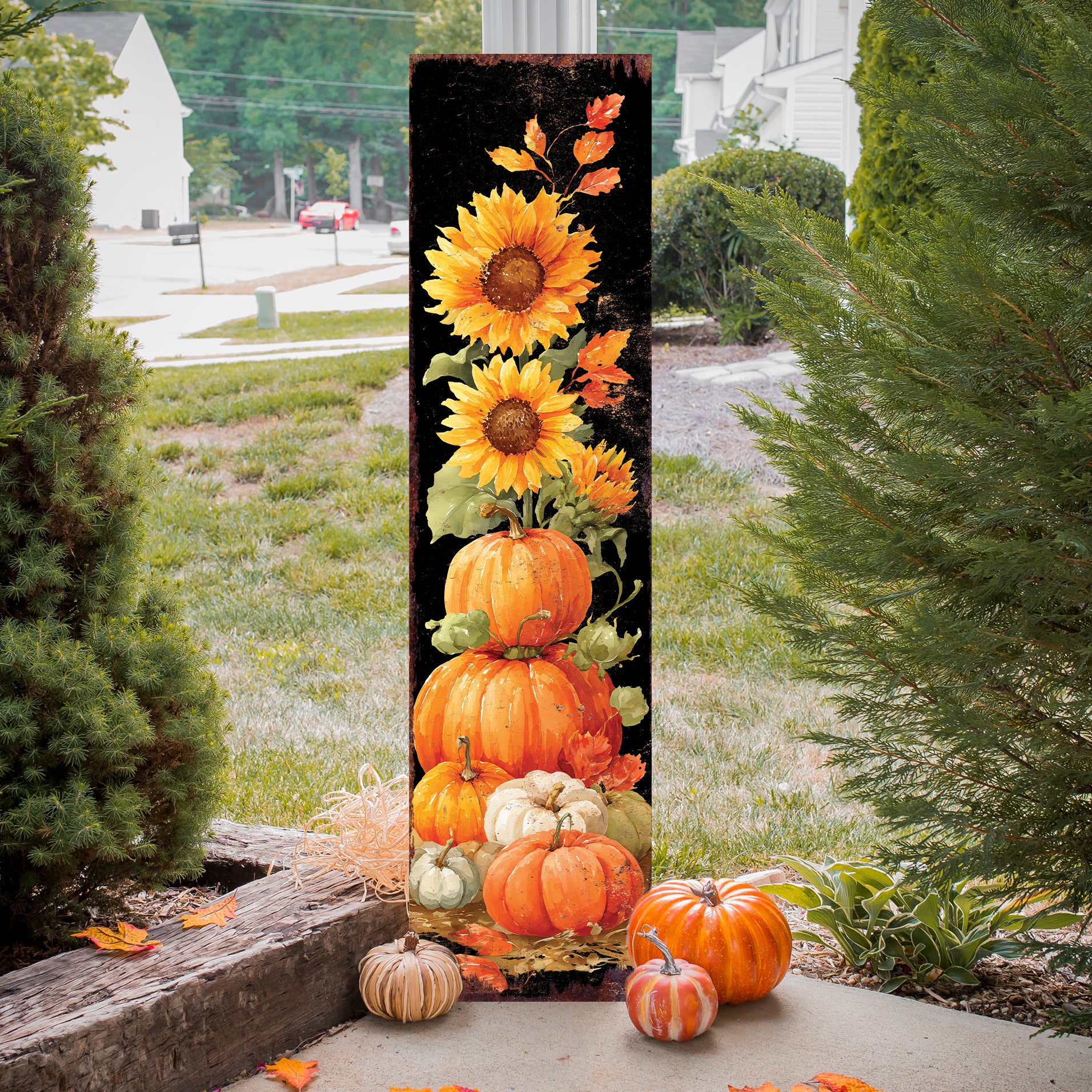Fall Porch Sign | Pumpkin & Sunflower Stack Vertical Outdoor Decor | Rustic Farmhouse Autumn Decoration for Front Door or Patio