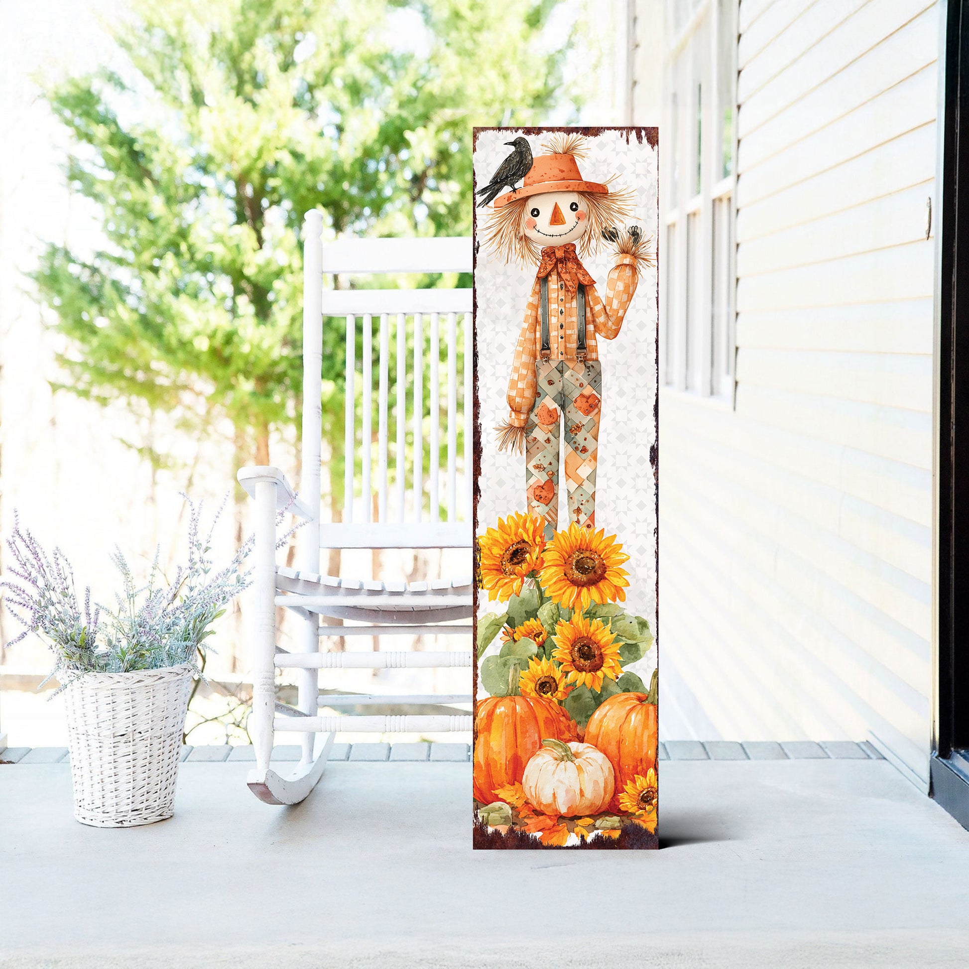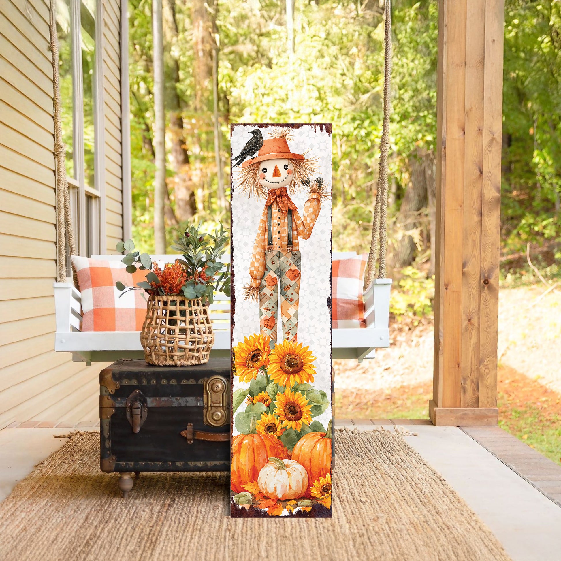 Fall Scarecrow Porch Sign | Autumn Decor with Sunflowers, Pumpkins & Crows | Perfect for Porch, Entryway, Patio, or Fall Display