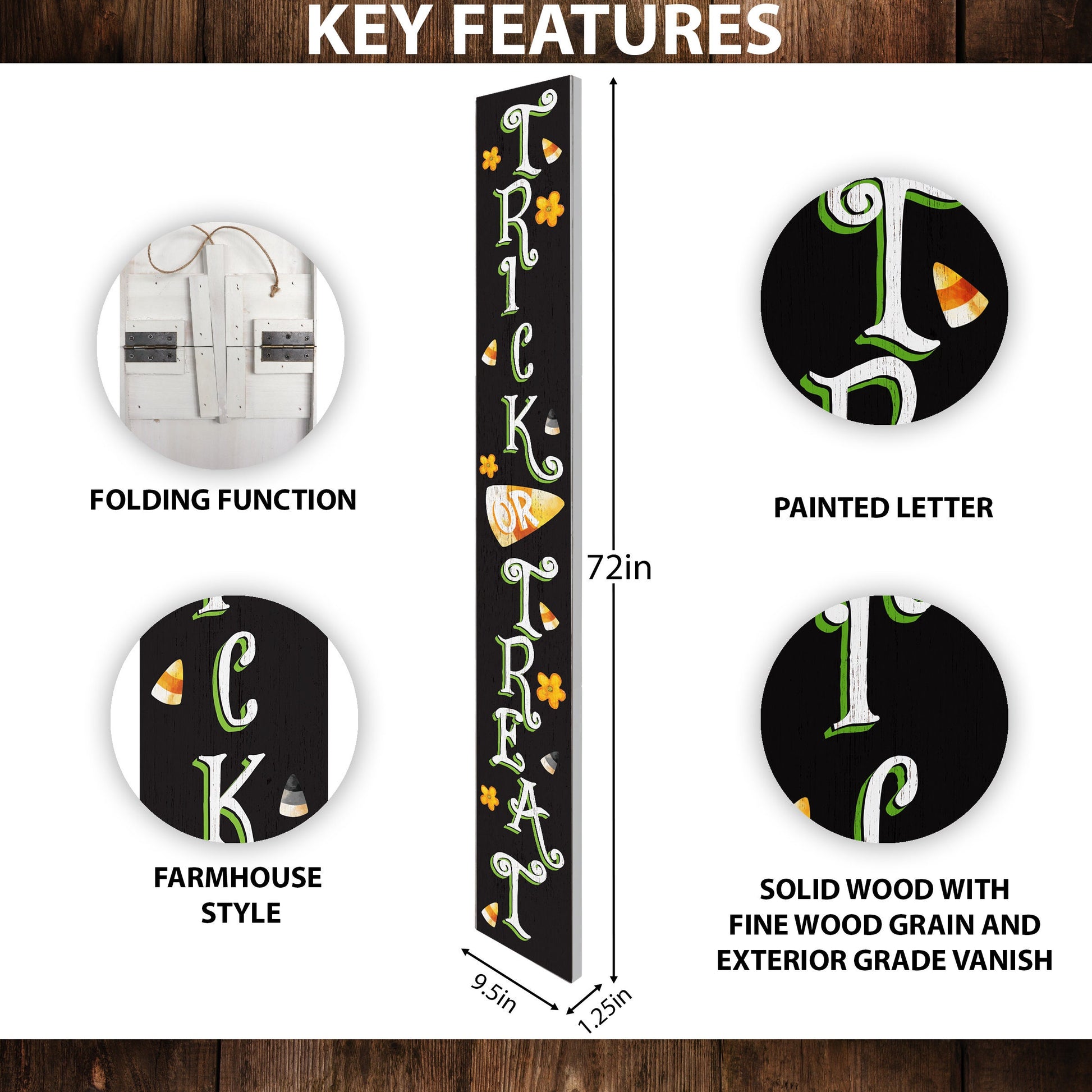 72in Halloween Porch Sign - Spooky Trick or Treat Front Door Decor