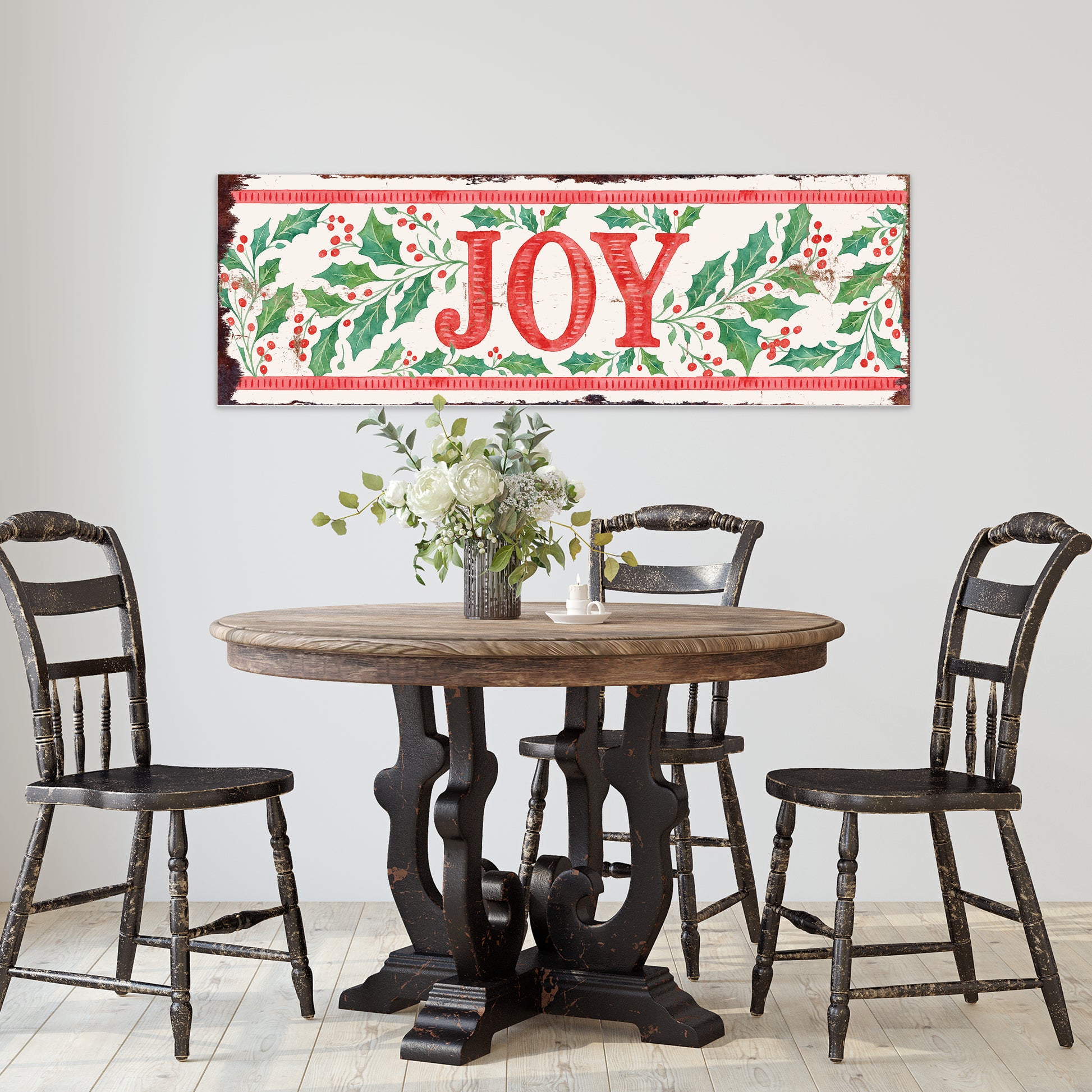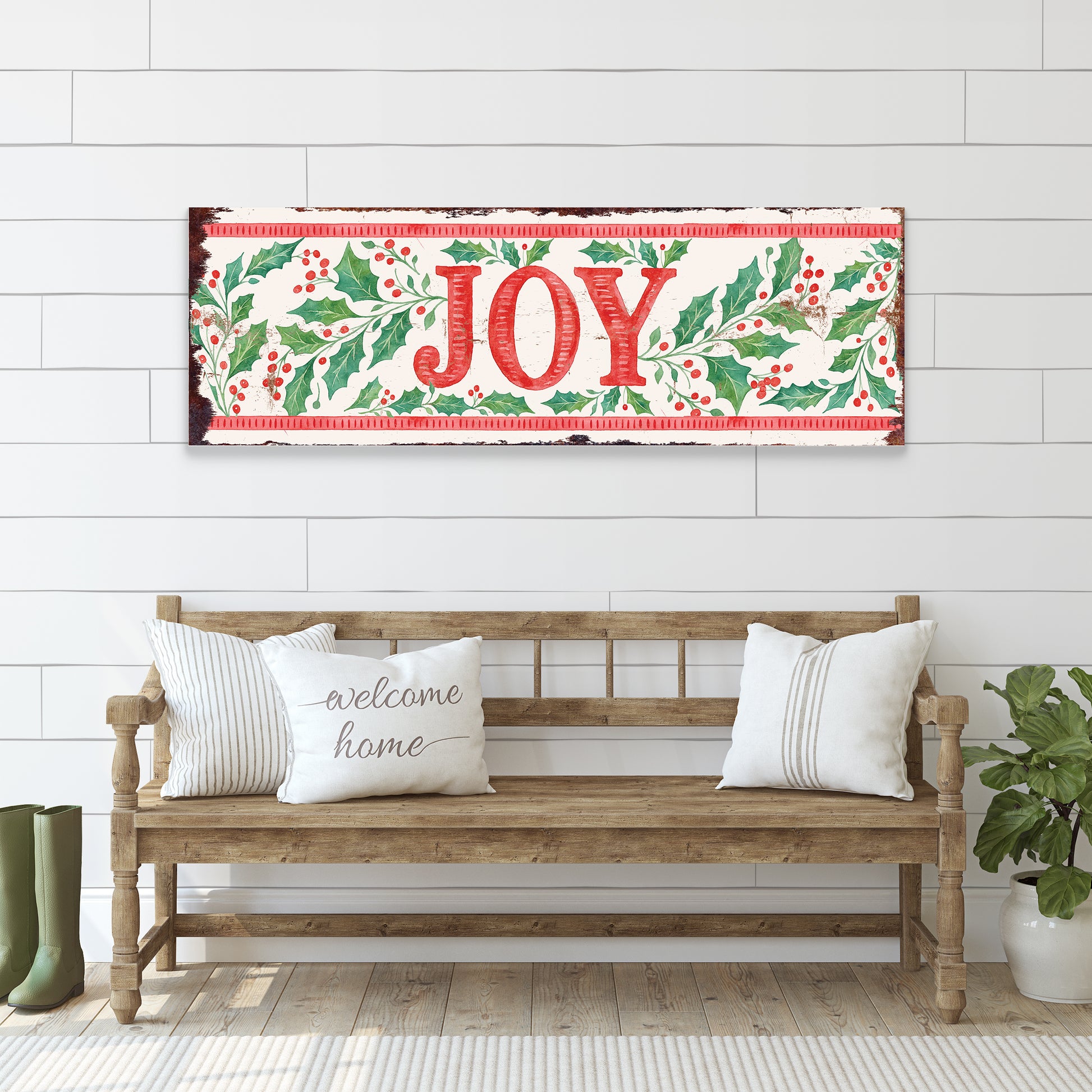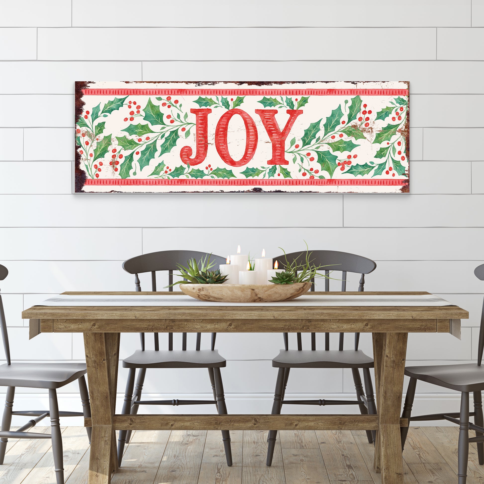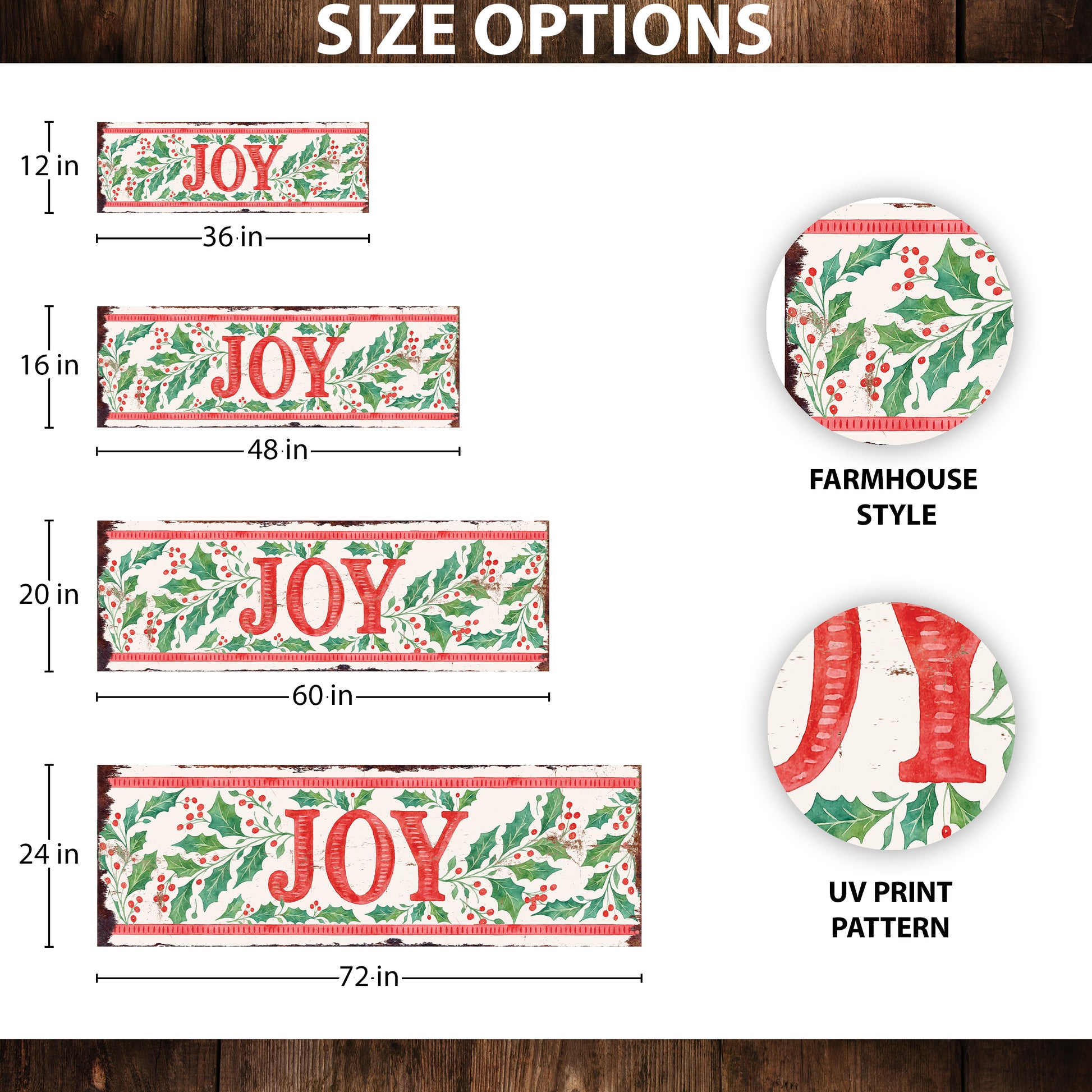 • Festive Holiday Sign – Features bold red “JOY” lettering surrounded by holly and berries.