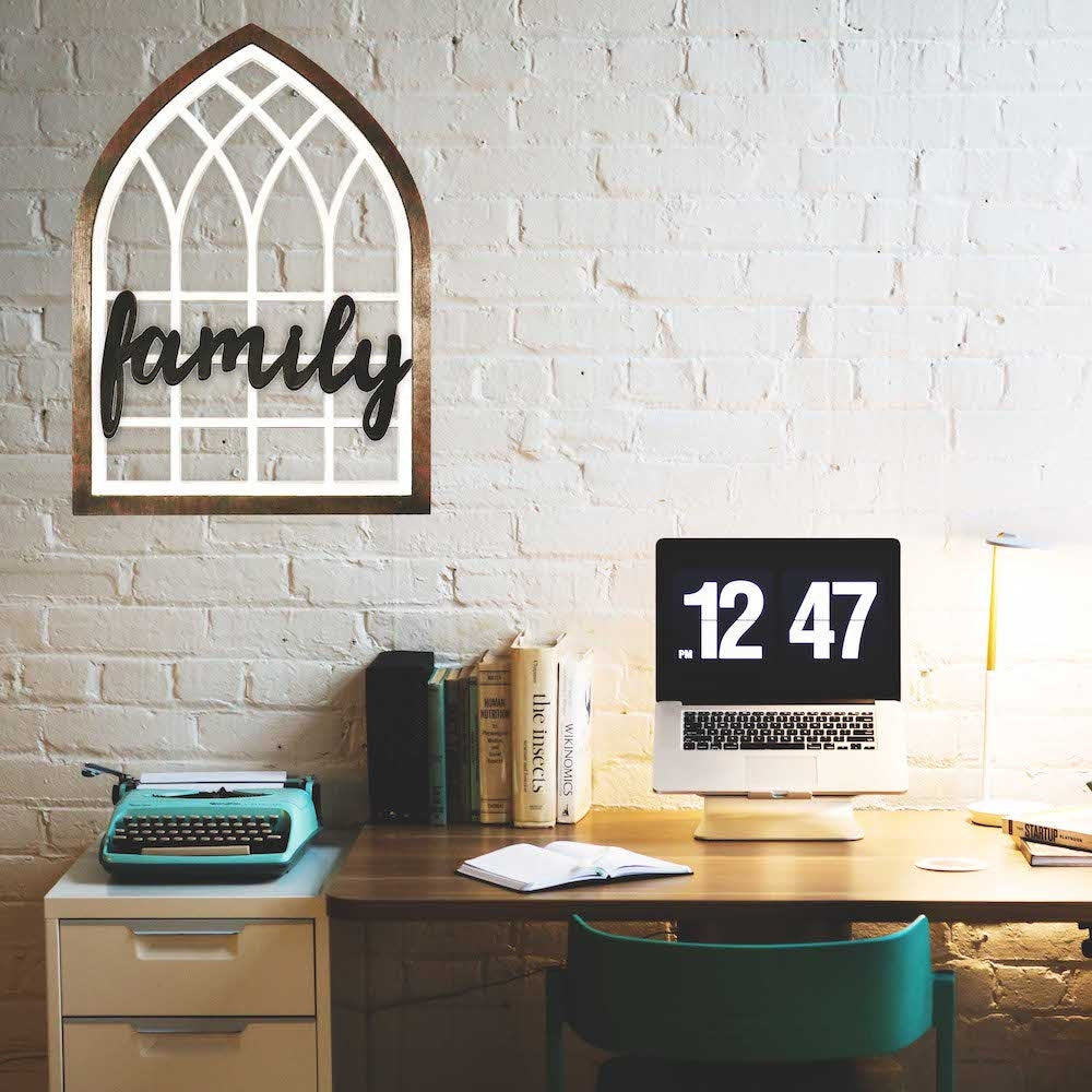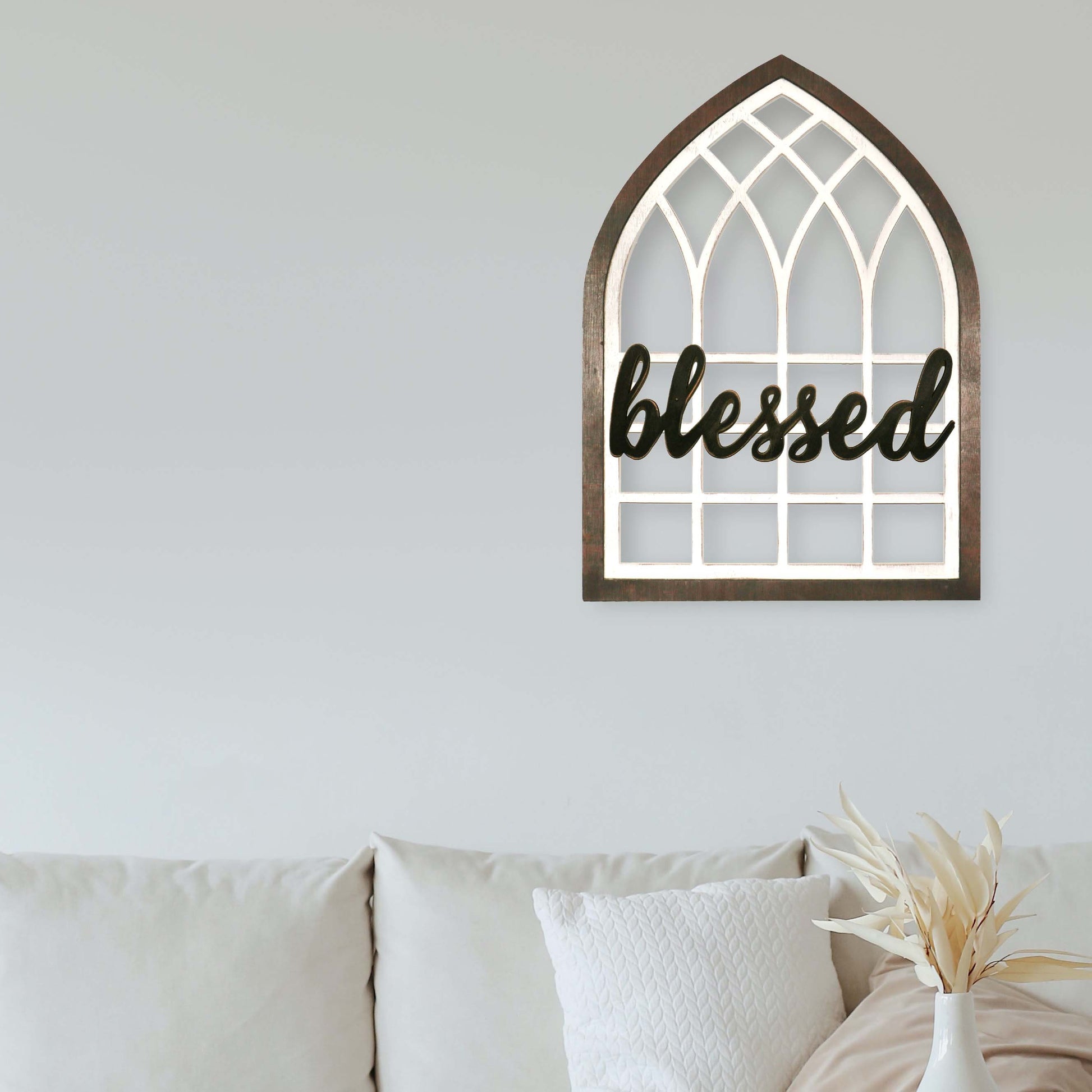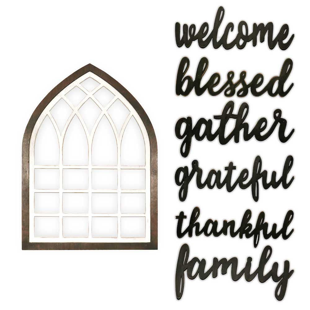 Create a charming wall display with this delightful Wood Wall Window Arches, it will surely give your home a touch of shabby chic charm. Our Interchangeable arch shaped wall rt measures approx. 17 inches wide and 24 inches tall. Its ideal to hang or display on a mantle or on your favorite wall. This arch sign has been sanded, stained and hand-painted. Rustic brown solid arched frame with black colored signs on a white wood bars, will add instant farmhouse character to any wall. This sign comes ready to be used, including 6 interchangeablesigns, easily switching out, will help bring style, charm and lifelong value to both exterior and interior of your home.
