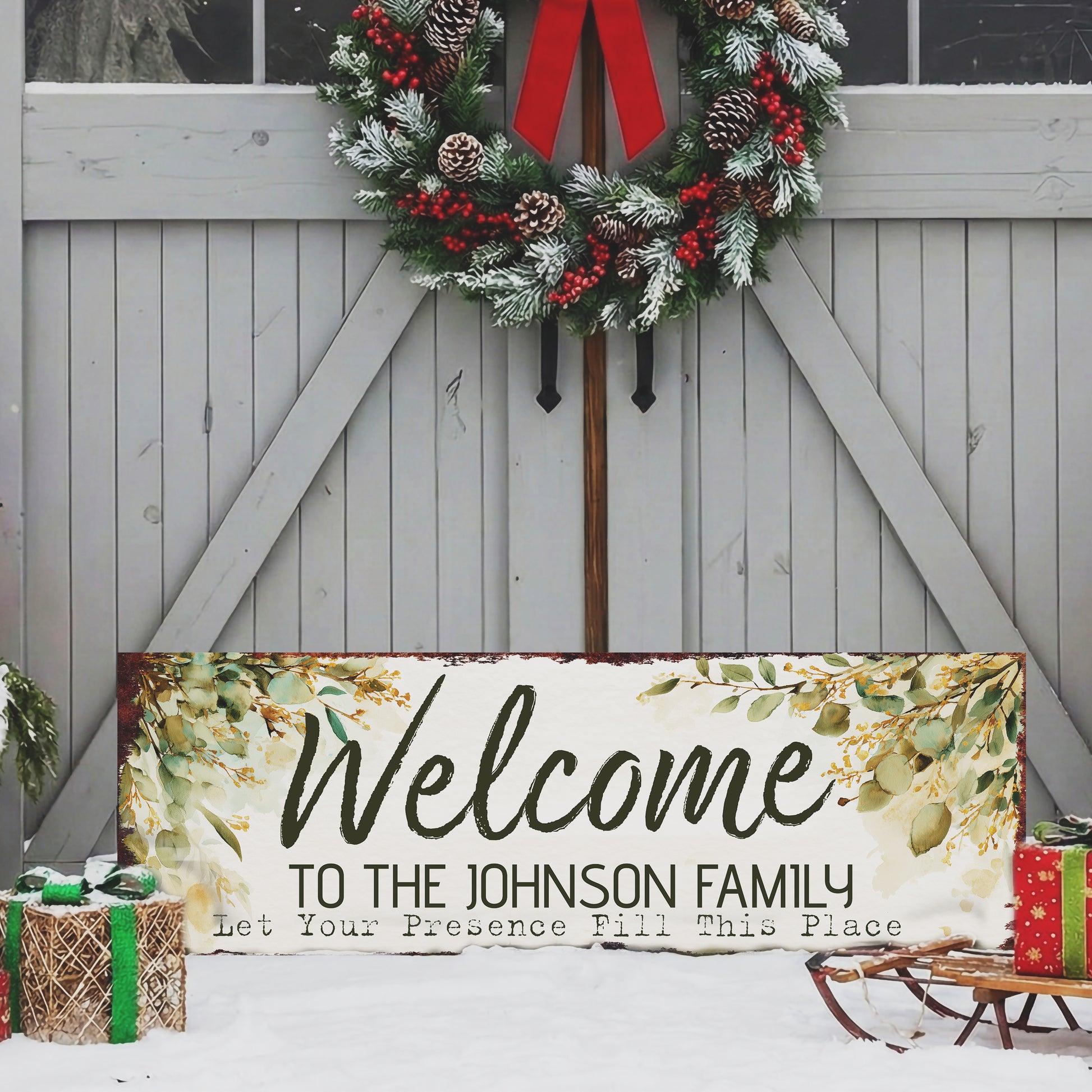 Transform your home into a haven of warmth and belonging with our exquisite personalized welcome sign. Expertly crafted, this rustic farmhouse piece embraces every season, inviting loved ones to 'Let Your Presence Fill This Place.' It’s the perfect expression of faith and family, making every arrival feel special. A thoughtful gift that resonates deeply.