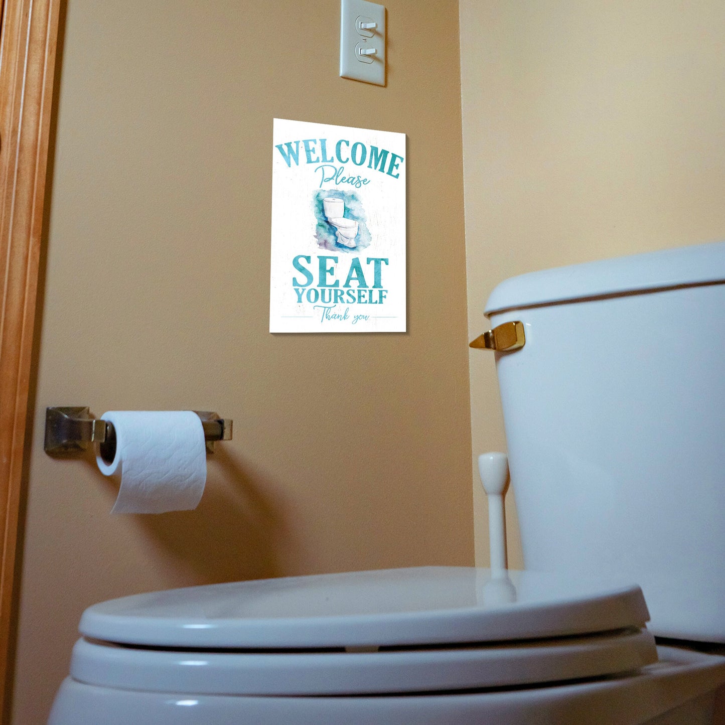 Infuse your home with warmth and wit! Our "Welcome Please Seat Yourself Thank You" wooden sign is the perfect accent to bring a smile to guests and family alike. Ideal for entryways, guest bathrooms, or even a cozy office nook, this piece adds character and a lighthearted touch to any space, making every visit more memorable. A thoughtful gift that truly delivers joy!