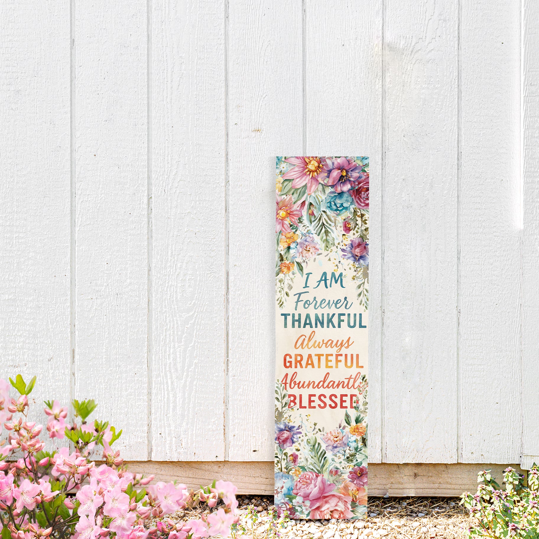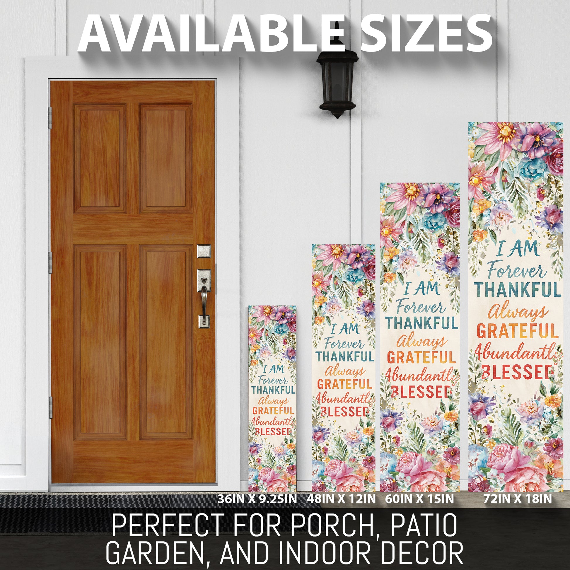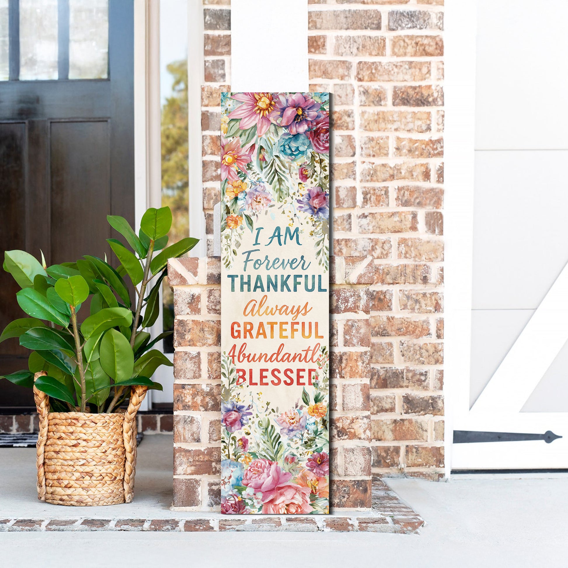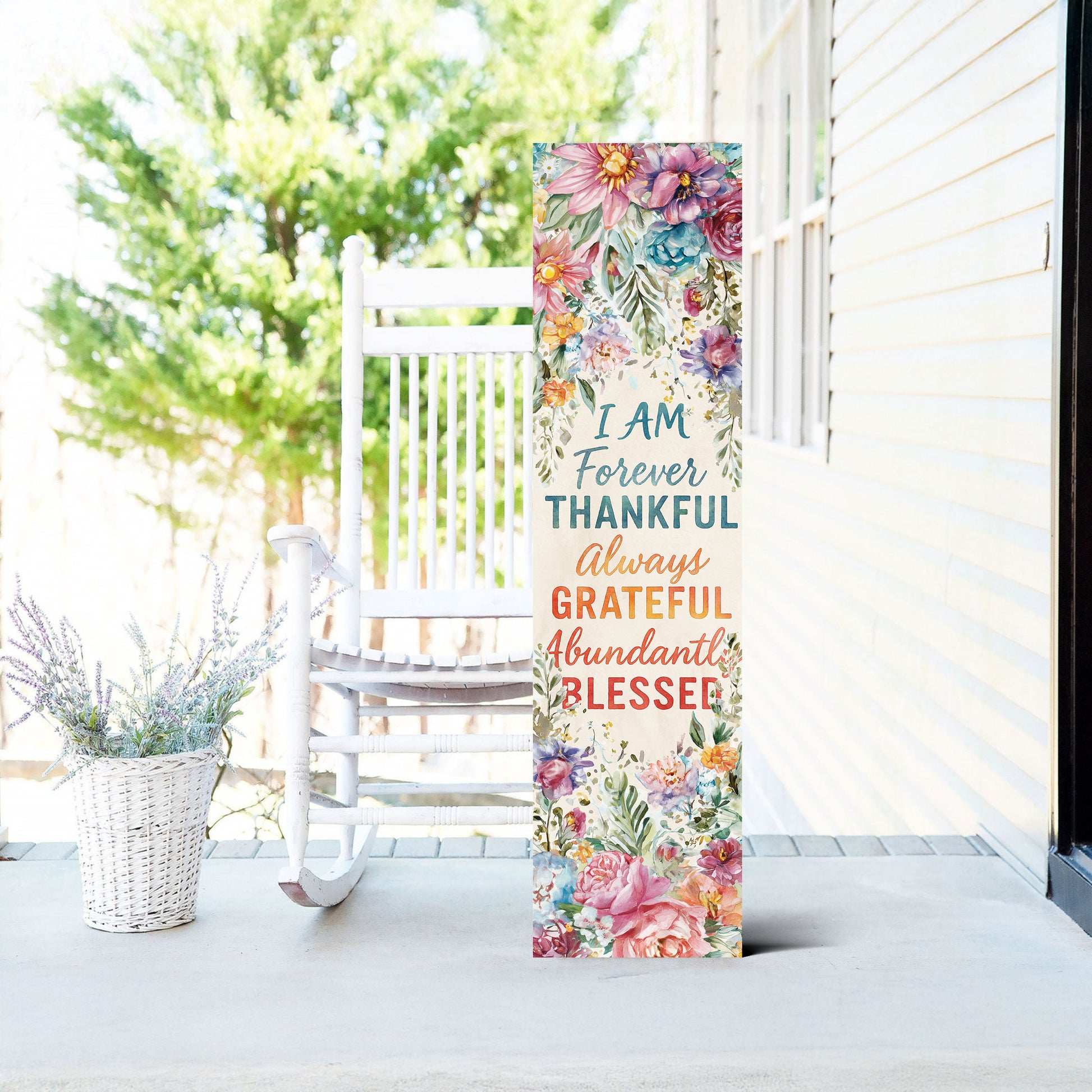 Add charm and inspiration to your home with this “Forever Thankful, Always Grateful, Abundantly Blessed” Porch Sign. Designed with colorful watercolor-style flowers and a rustic farmhouse background, this sign makes a warm and uplifting statement for your entryway, patio, or indoor spaces. Perfect for year-round encouragement or seasonal use during fall, Thanksgiving, and spring, it enhances porches, gardens, and living spaces with positivity and farmhouse charm. Available in multiple sizes to fit any décor setting. A thoughtful gift for friends, family, or anyone who loves cheerful, inspirational home décor.