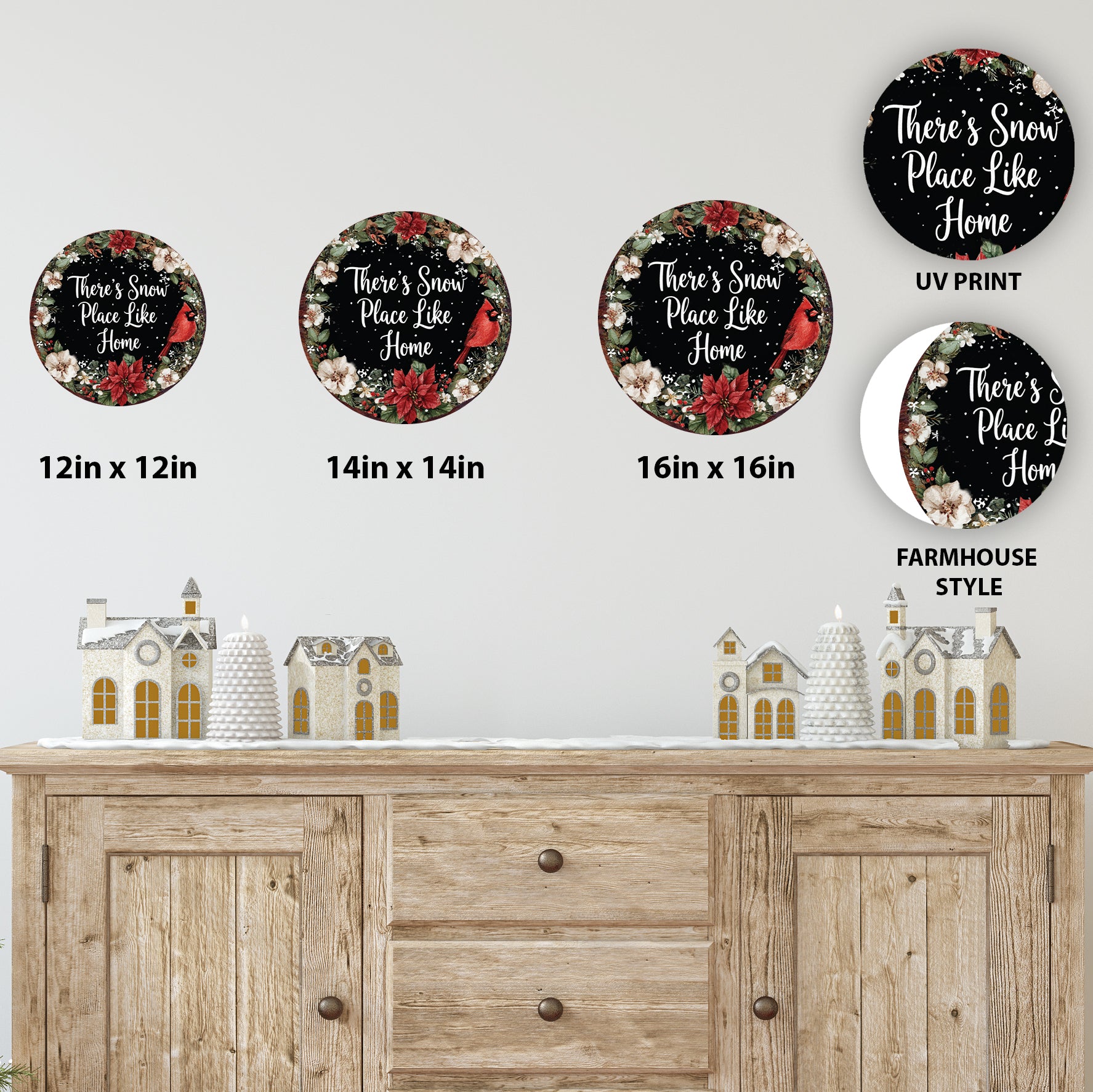 Winter Round Door Sign | Farmhouse 'Snow Place Like Home' Wall Decor