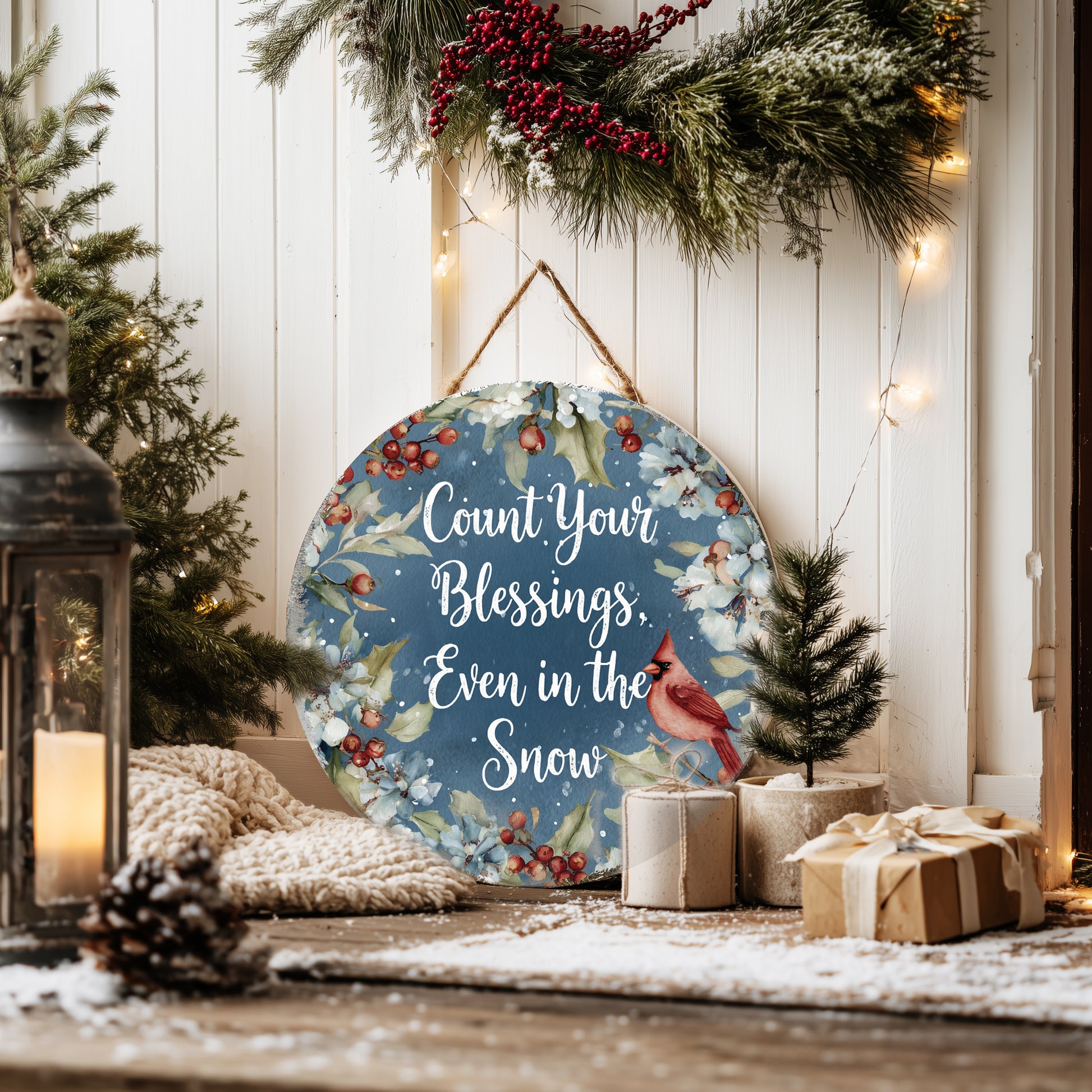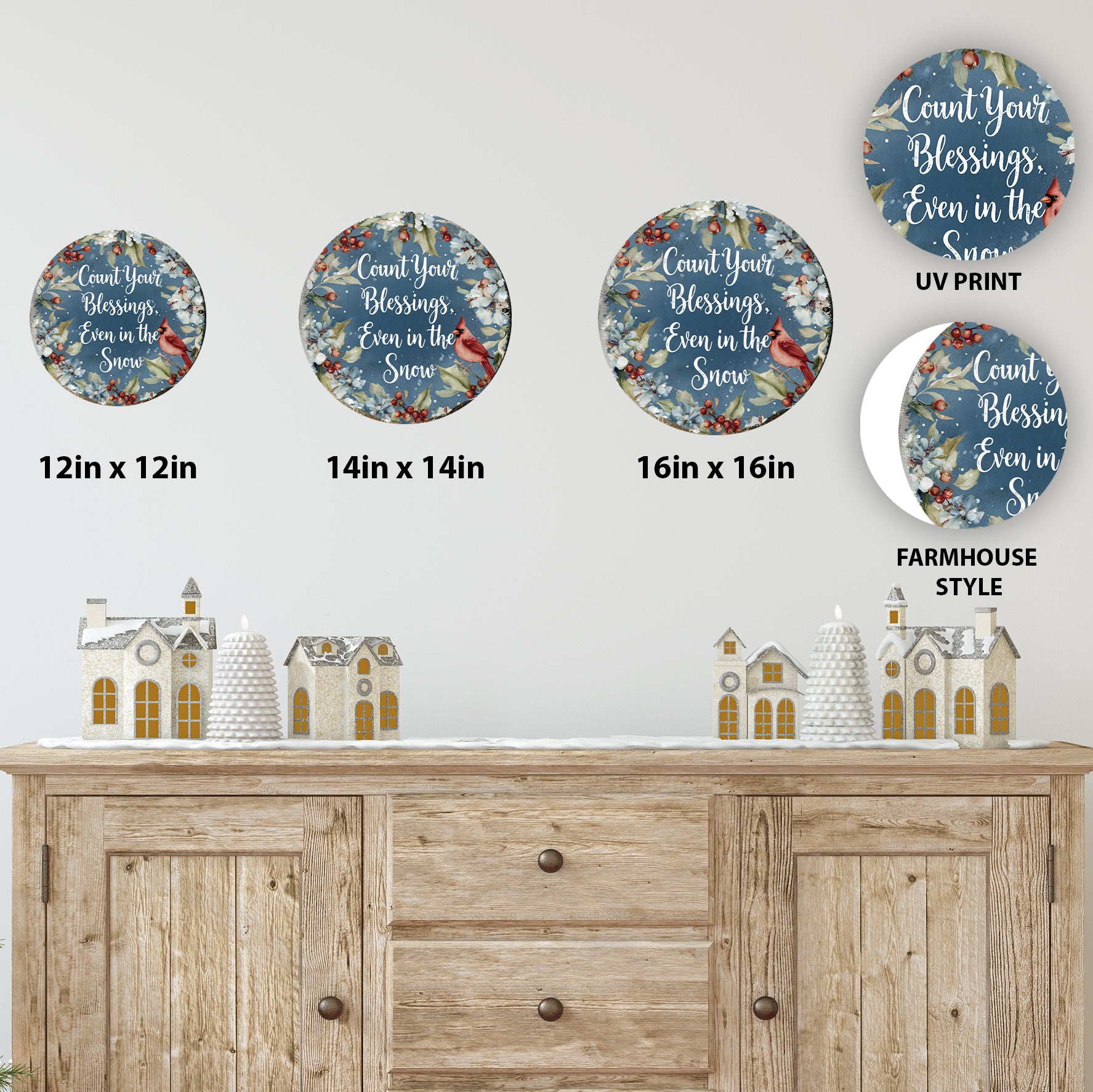 Winter Farmhouse Blessings Round Wall Sign | Rustic Cozy Home Decor
