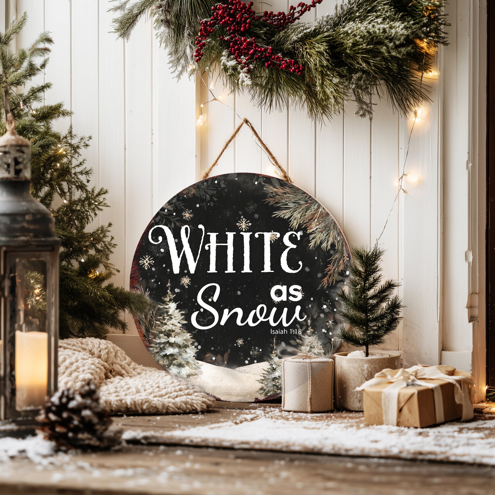 Christmas Scripture Wall Sign | White as Snow Isaiah 1:18 Round Decor