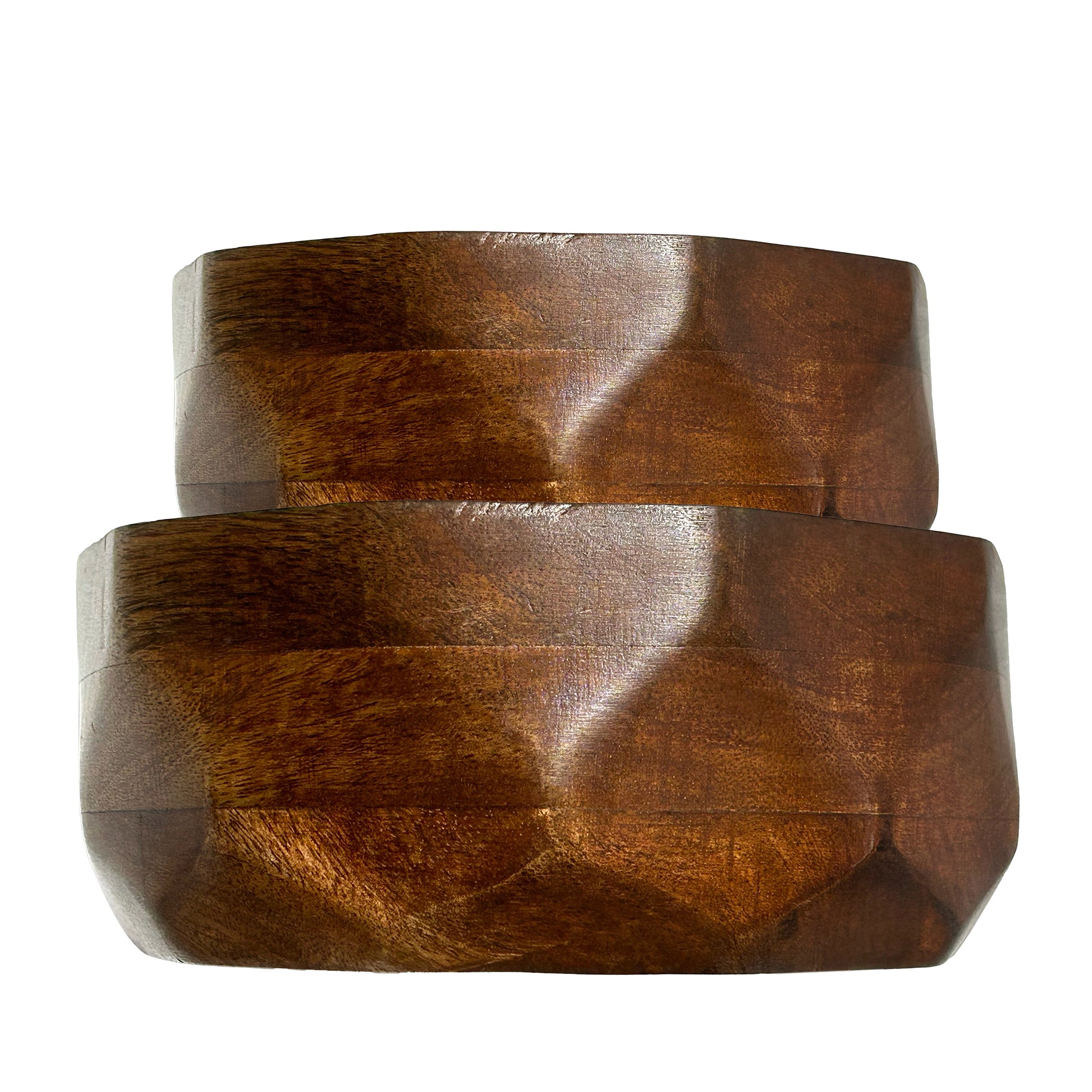 Acacia Wood Serving Bowls | Calabash Bowl Set of 2 | Hand-Carved Decorative Wooden Bowls